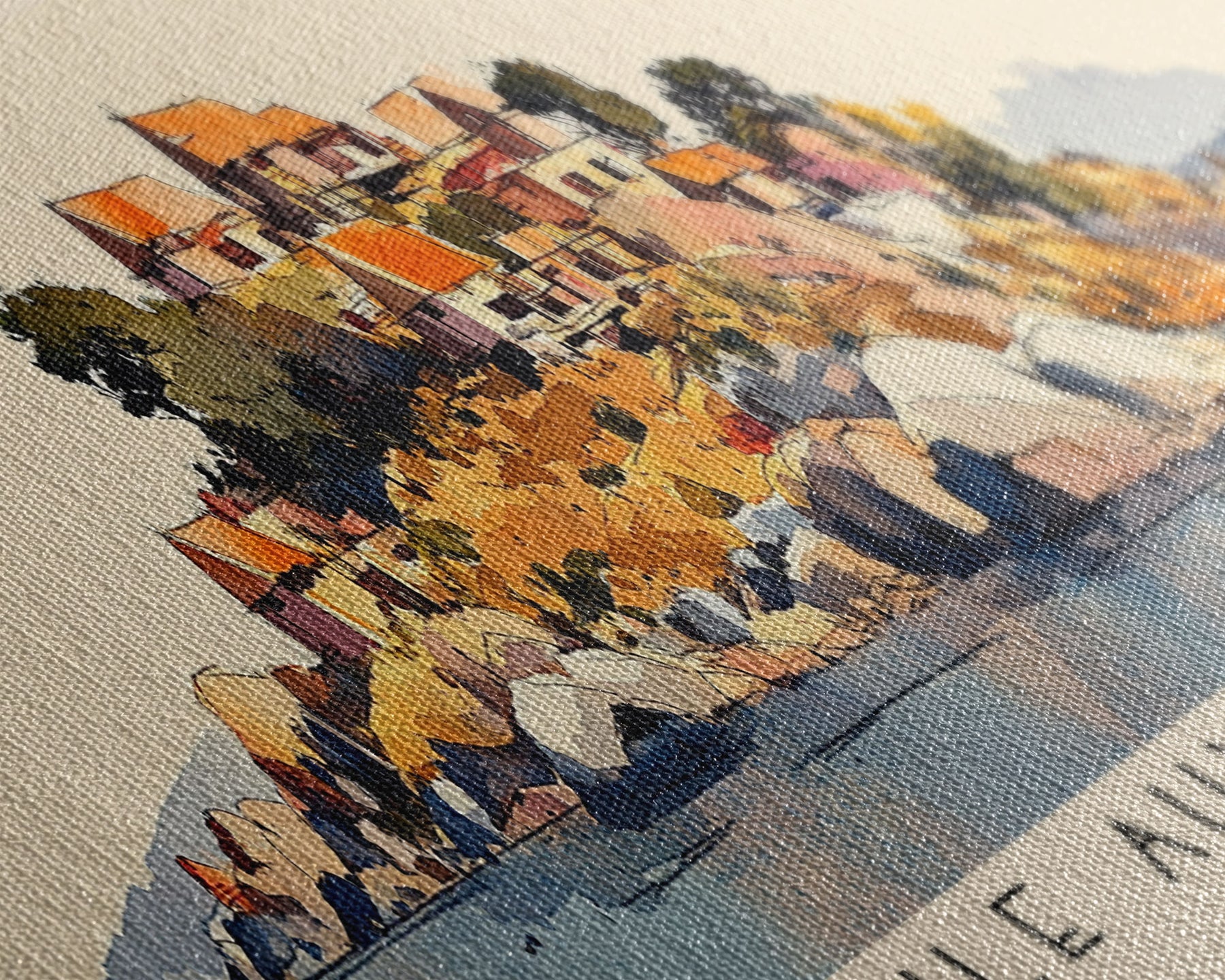 Most of our canvases are made in the USA, with the exception of canvases ordered with the light oak unstained frames, and any large canvases (24x48, 30x60, 16x48 and 20x60) ordered WITH a frame. These are temporarily made in and shipped from Europe, while we try to find a more consistent supplier in the USA.