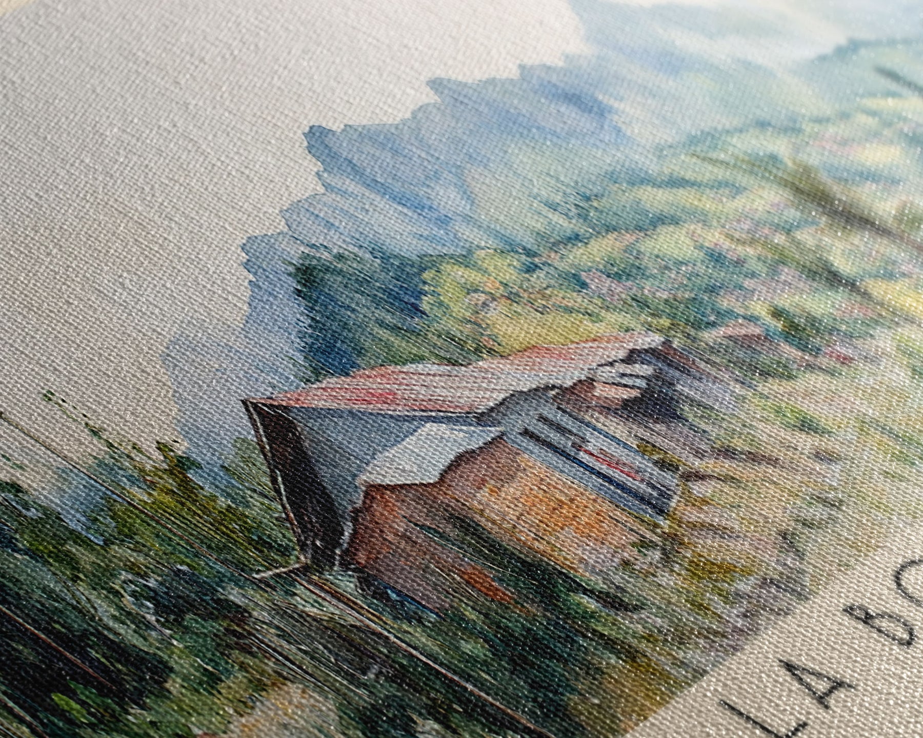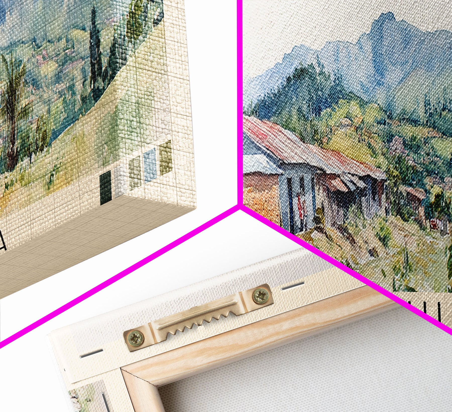 Most of our canvases are made in the USA, with the exception of canvases ordered with the light oak unstained frames, and any large canvases (24x48, 30x60, 16x48 and 20x60) ordered WITH a frame. These are temporarily made in and shipped from Europe, while we try to find a more consistent supplier in the USA.
