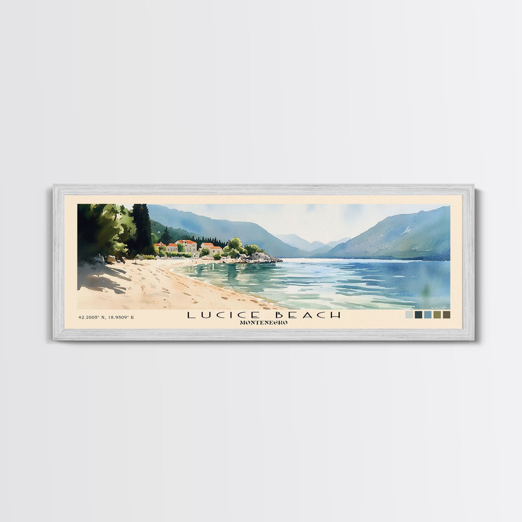 Lucice Beach, Montenegro Watercolor Beach Print, Vacation Gift, Montenegro Wall Art, Beach Painting, Beach Decor, Beach Painting