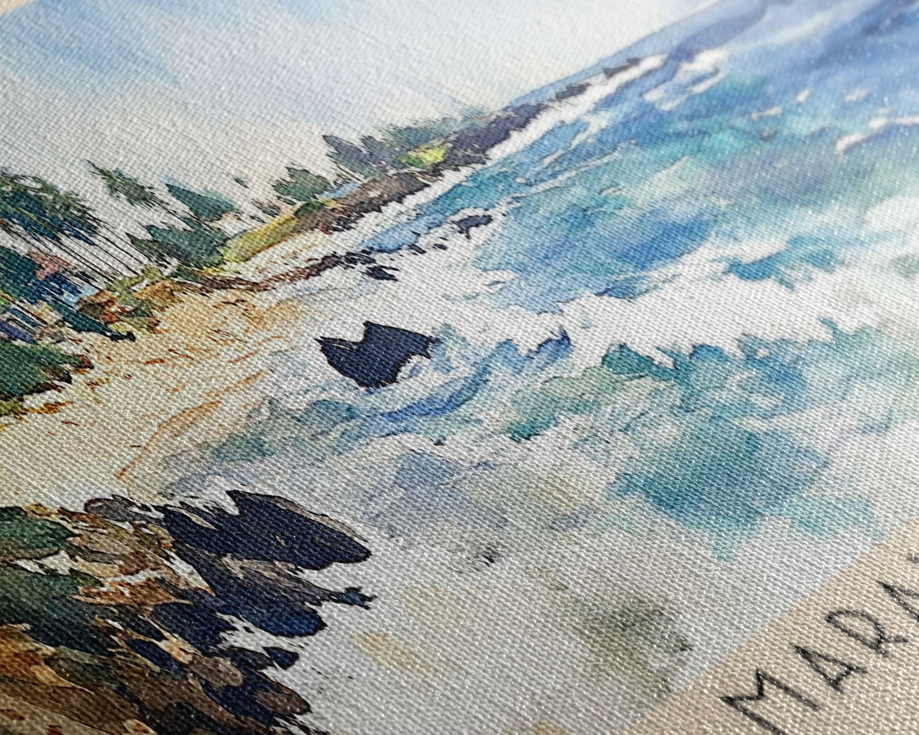 Most of our canvases are made in the USA, with the exception of canvases ordered with the light oak unstained frames, and any large canvases (24x48, 30x60, 16x48 and 20x60) ordered WITH a frame. These are temporarily made in and shipped from Europe, while we try to find a more consistent supplier in the USA.