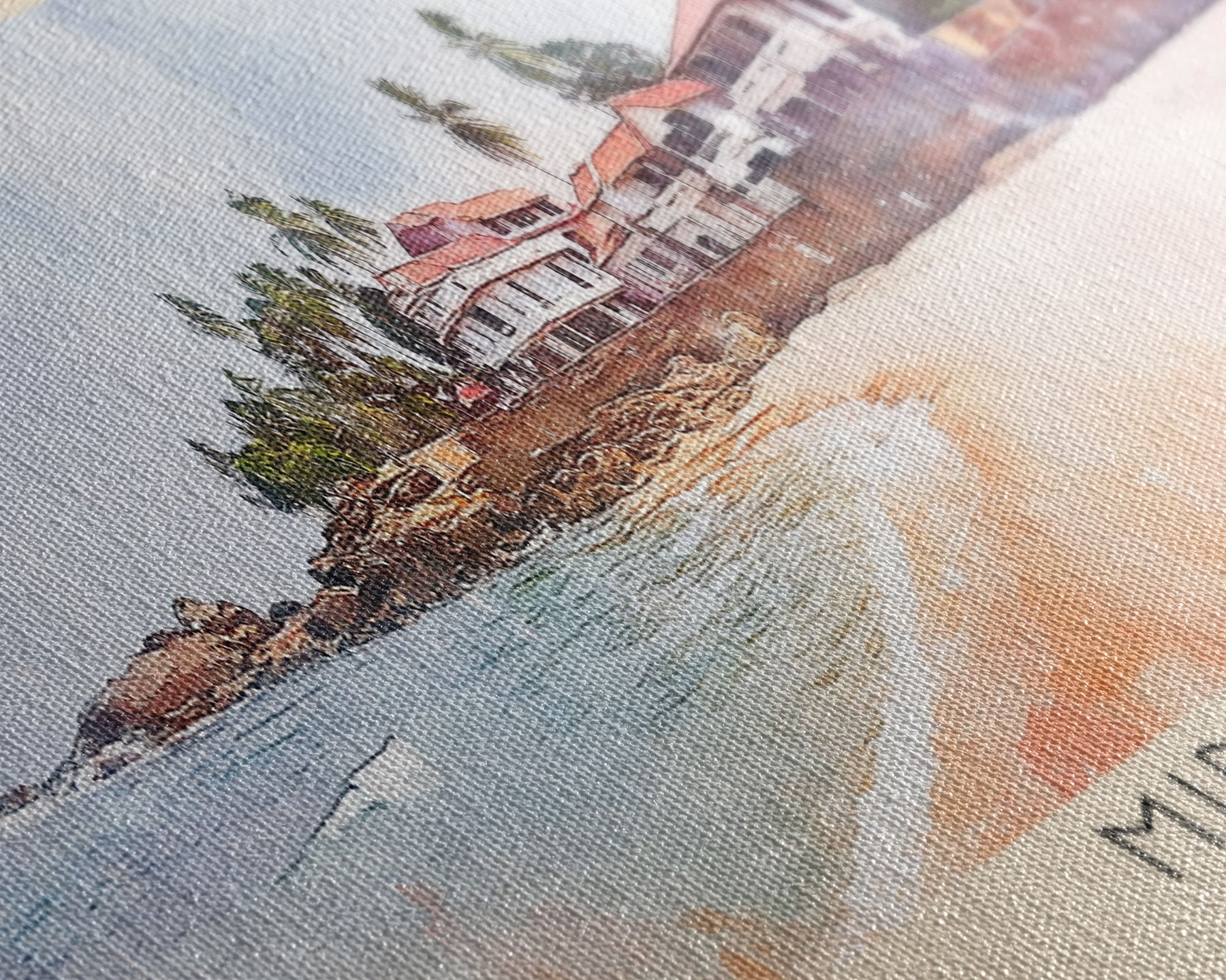 Most of our canvases are made in the USA, with the exception of canvases ordered with the light oak unstained frames, and any large canvases (24x48, 30x60, 16x48 and 20x60) ordered WITH a frame. These are temporarily made in and shipped from Europe, while we try to find a more consistent supplier in the USA.