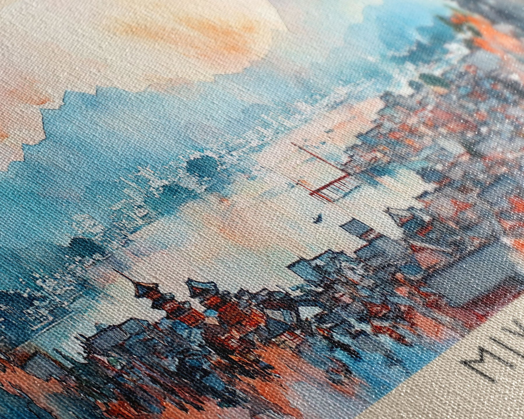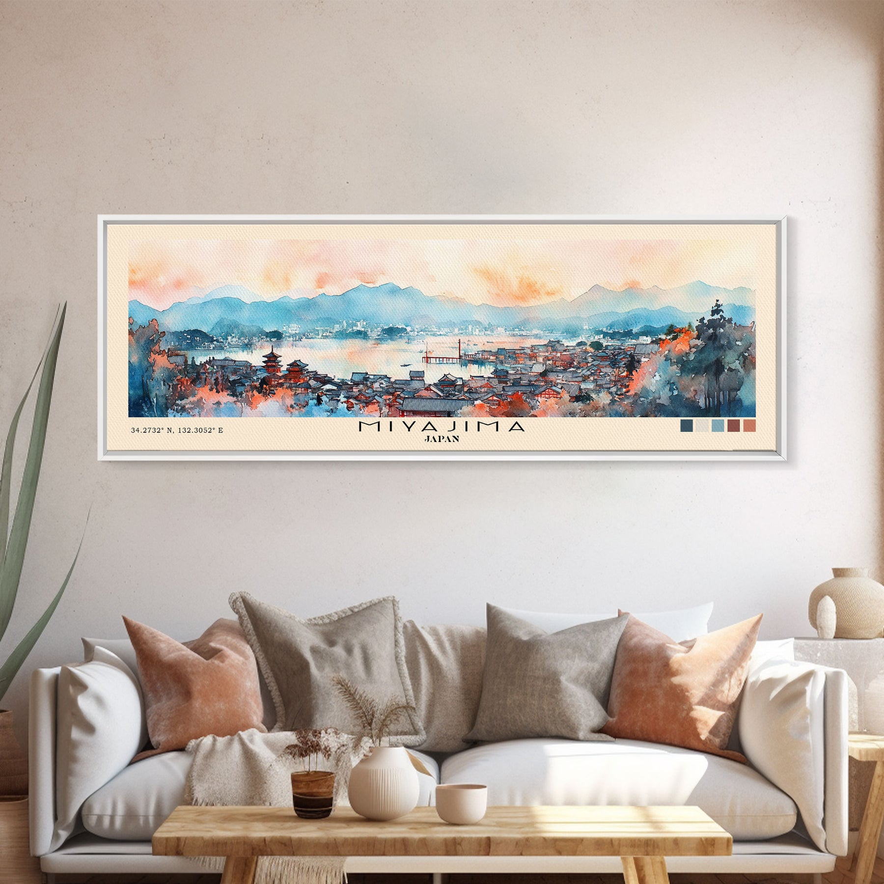 Miyajima, Japan Watercolor Print, Vacation Gift, Japan Wall Art, Beach Painting, Beach Decor, Large Wall Art, Wood Frame Art