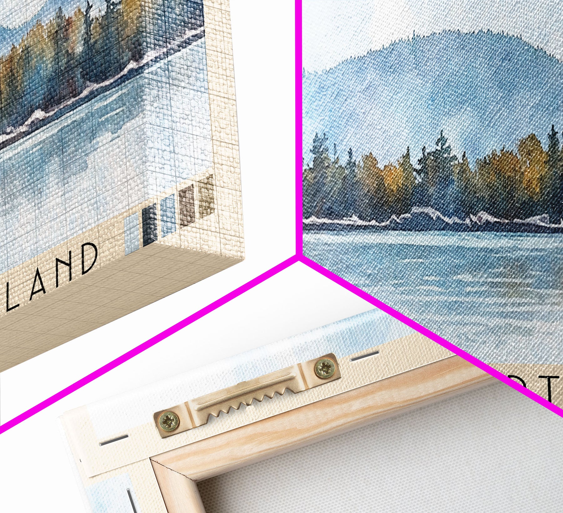Mount Desert Island, Maine Watercolor Beach Print, Vacation Gift, Maine Wall Art, Framed Canvas Print, Framed Beach Painting