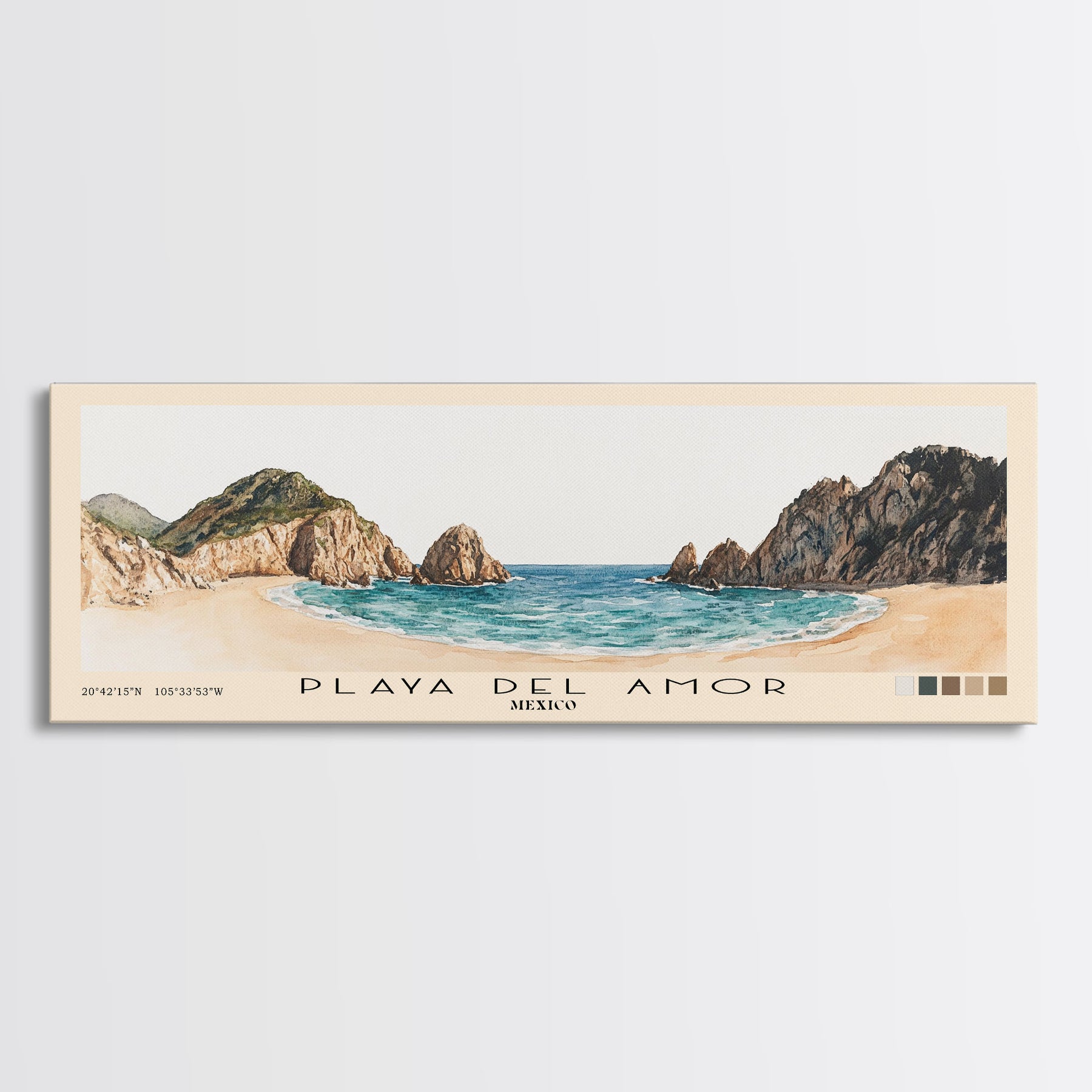 Playa del Amor, Mexico Watercolor Beach Print, Vacation Gift, Mexico Wall Art, Framed Canvas Print, Framed Beach Painting