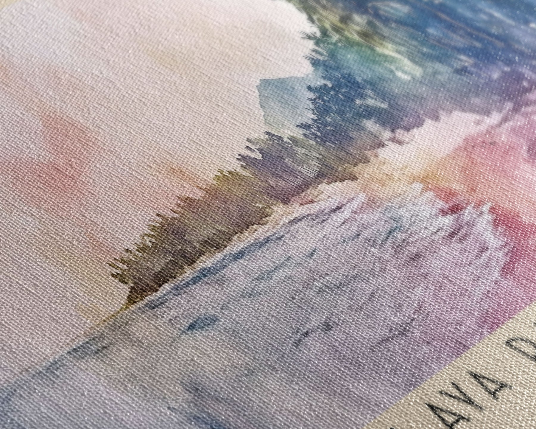 Most of our canvases are made in the USA, with the exception of canvases ordered with the light oak unstained frames, and any large canvases (24x48, 30x60, 16x48 and 20x60) ordered WITH a frame. These are temporarily made in and shipped from Europe, while we try to find a more consistent supplier in the USA.