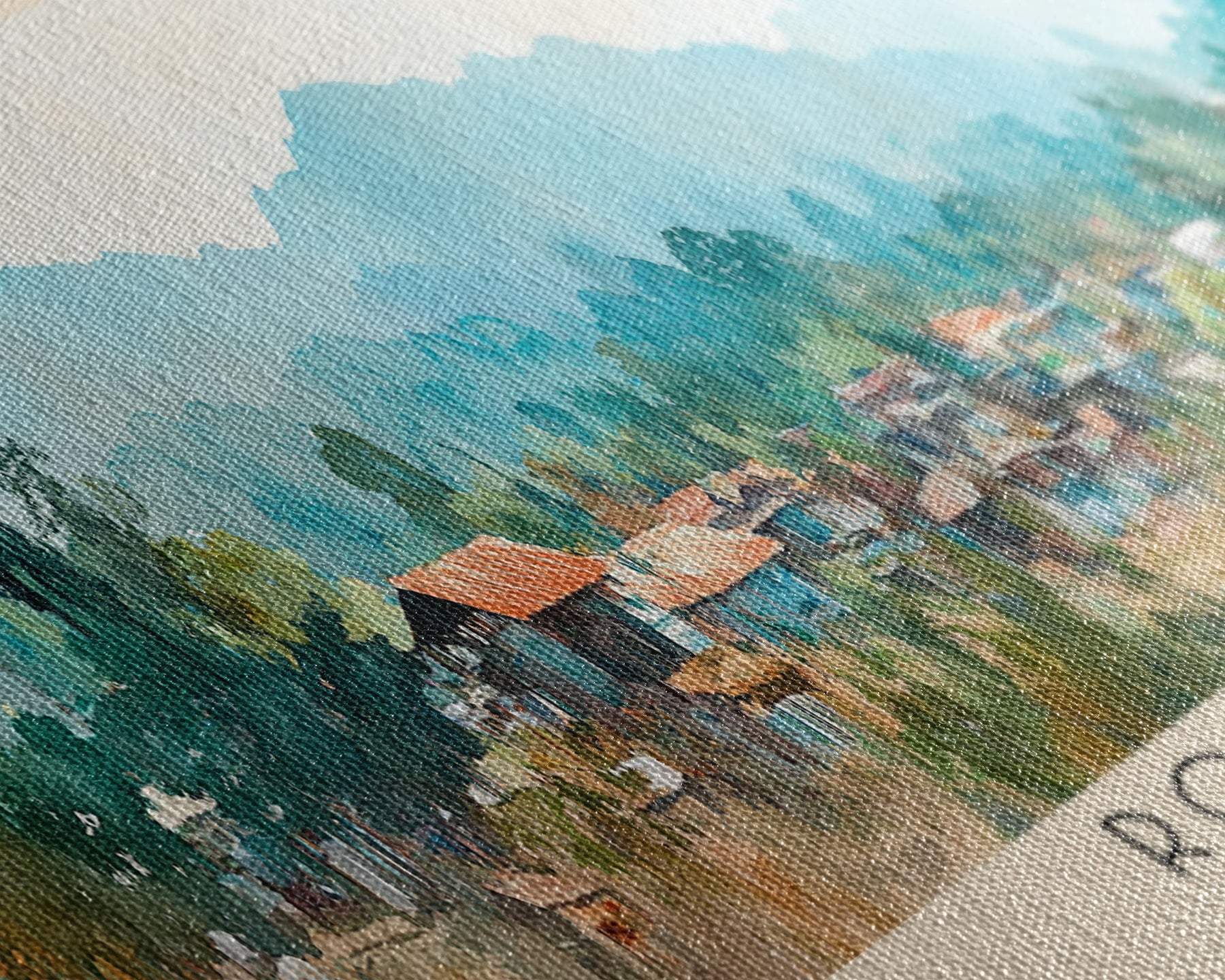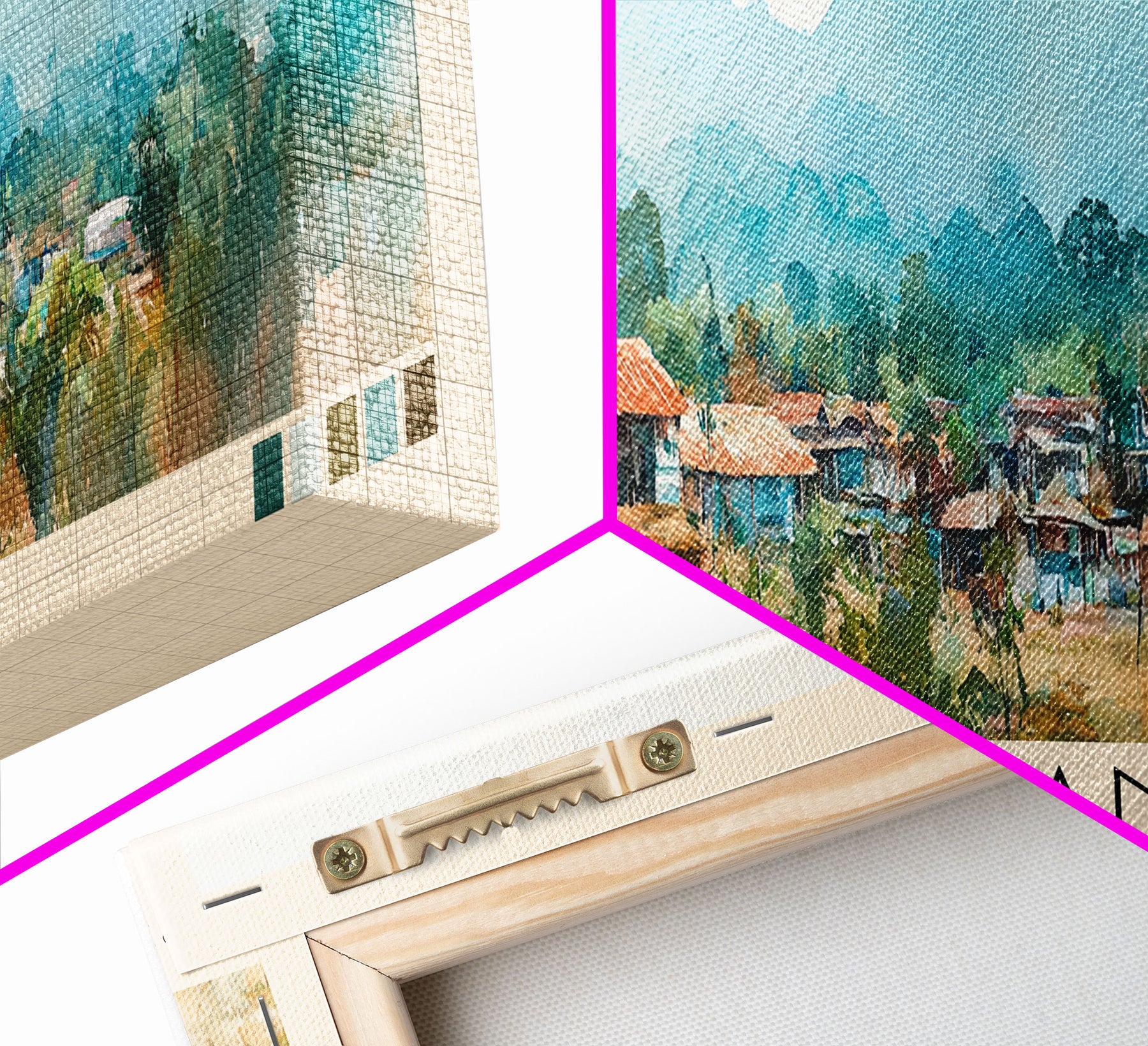 Most of our canvases are made in the USA, with the exception of canvases ordered with the light oak unstained frames, and any large canvases (24x48, 30x60, 16x48 and 20x60) ordered WITH a frame. These are temporarily made in and shipped from Europe, while we try to find a more consistent supplier in the USA.