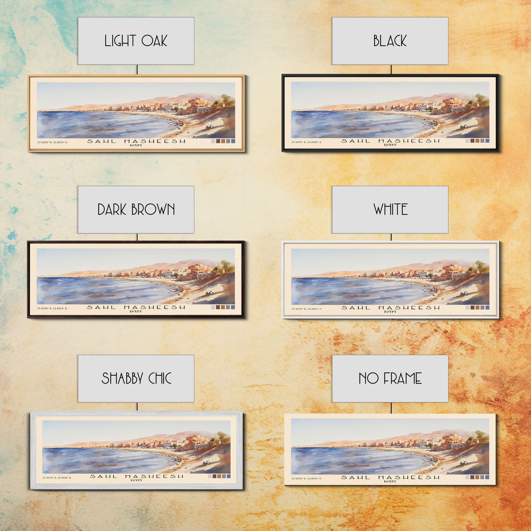 Sahl Hasheesh, Egypt Watercolor Beach Print, Vacation Gift, Egypt Wall Art, Framed Canvas Print, Framed Beach Painting