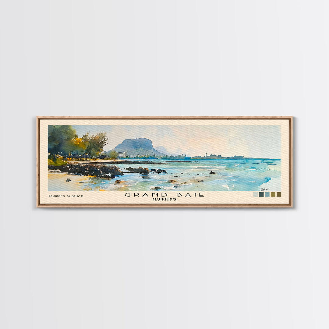 Grand Baie, Mauritius Panoramic Beach Print, Vacation Gift, Mauritius Wall Art, Framed Canvas Print, Framed Beach Painting
