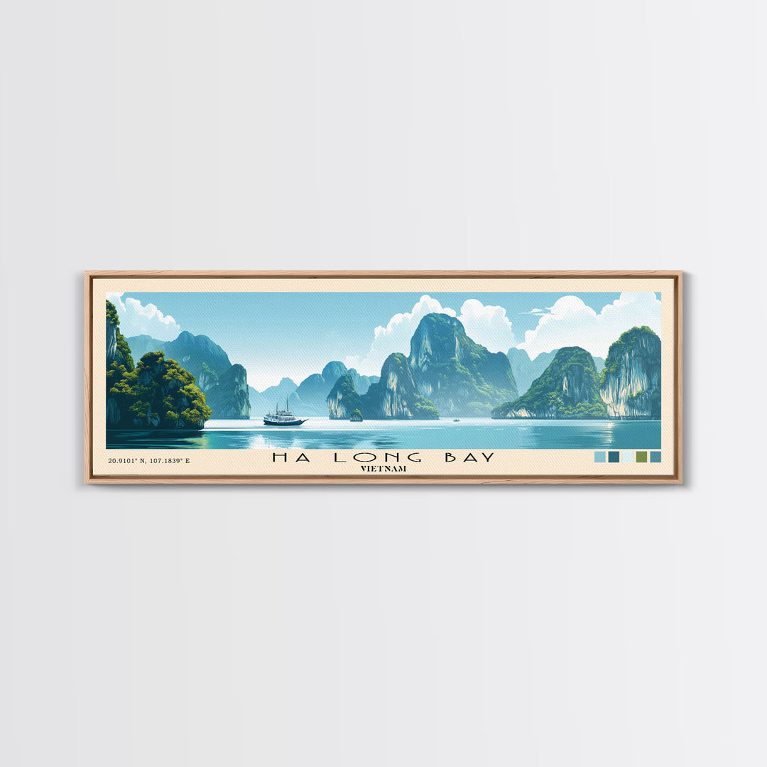 Ha Long Bay, Vietnam Panoramic Print, Vacation Gift, Vietnam Wall Art, Beach Painting, Beach Decor, Large Wall Art, Wood Frame Art