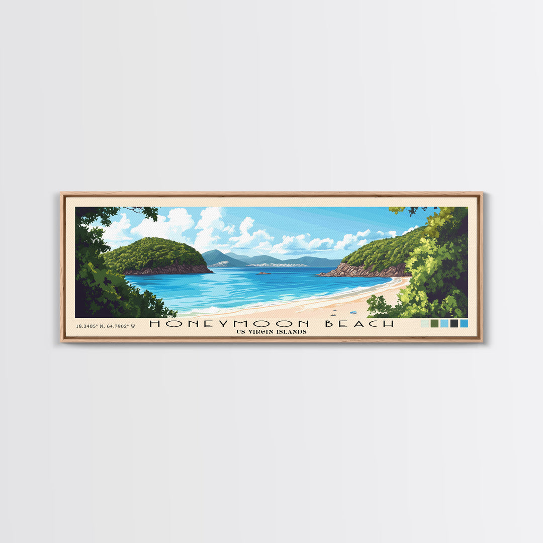 Honeymoon Beach, US Virgin islands Panoramic Print, Vacation Gift, US Virgin islands Wall Art, Beach Painting, Beach Decor, Large Wall Art, Wood Frame Art