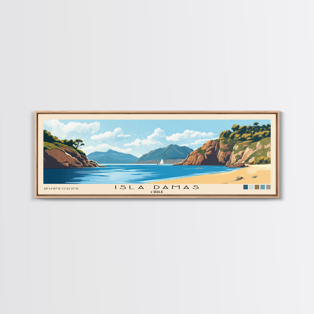 Isla Damas, Chile Panoramic Print, Vacation Gift, Chile Wall Art, Beach Painting, Beach Decor, Large Wall Art, Wood Frame Art