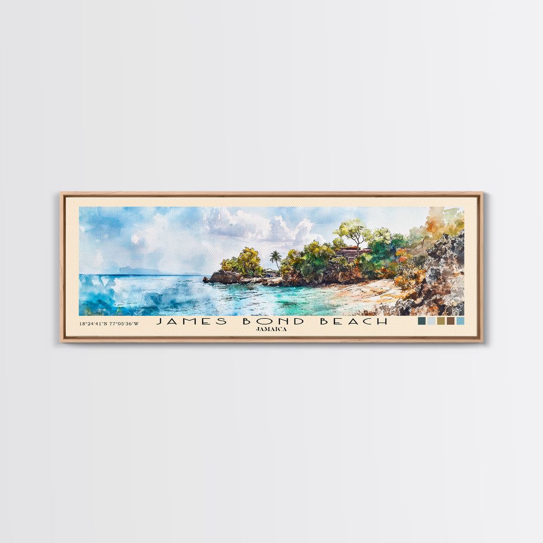 James Bond Beach, Jamaica Panoramic Beach Print, Vacation Gift, Jamaica Wall Art, Framed Canvas Print, Framed Beach Painting