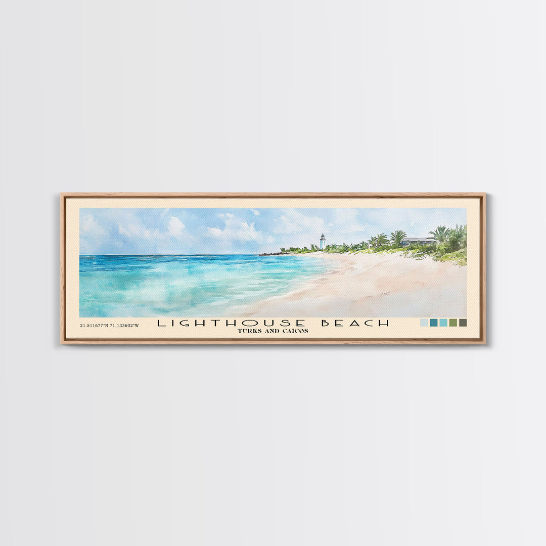 Lighthouse Beach, Turks and Caicos Watercolor Beach Print, Vacation Gift, Turks and Caicos Wall Art, Framed Canvas Print, Framed Beach Painting