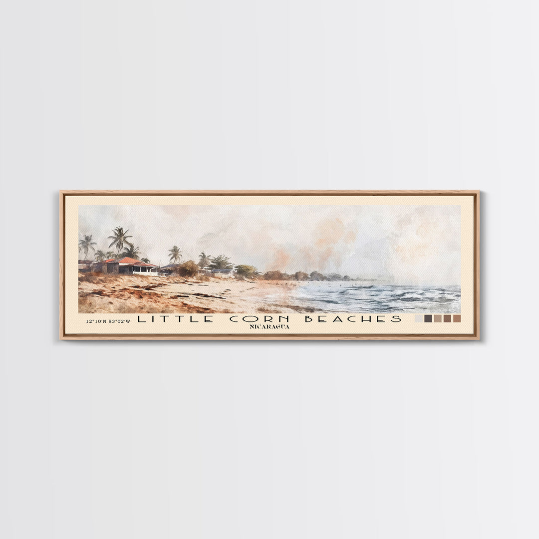 Little Corn beaches, Nicaragua Panoramic Beach Print, Vacation Gift, Nicaragua Wall Art, Framed Canvas Print, Framed Beach Painting