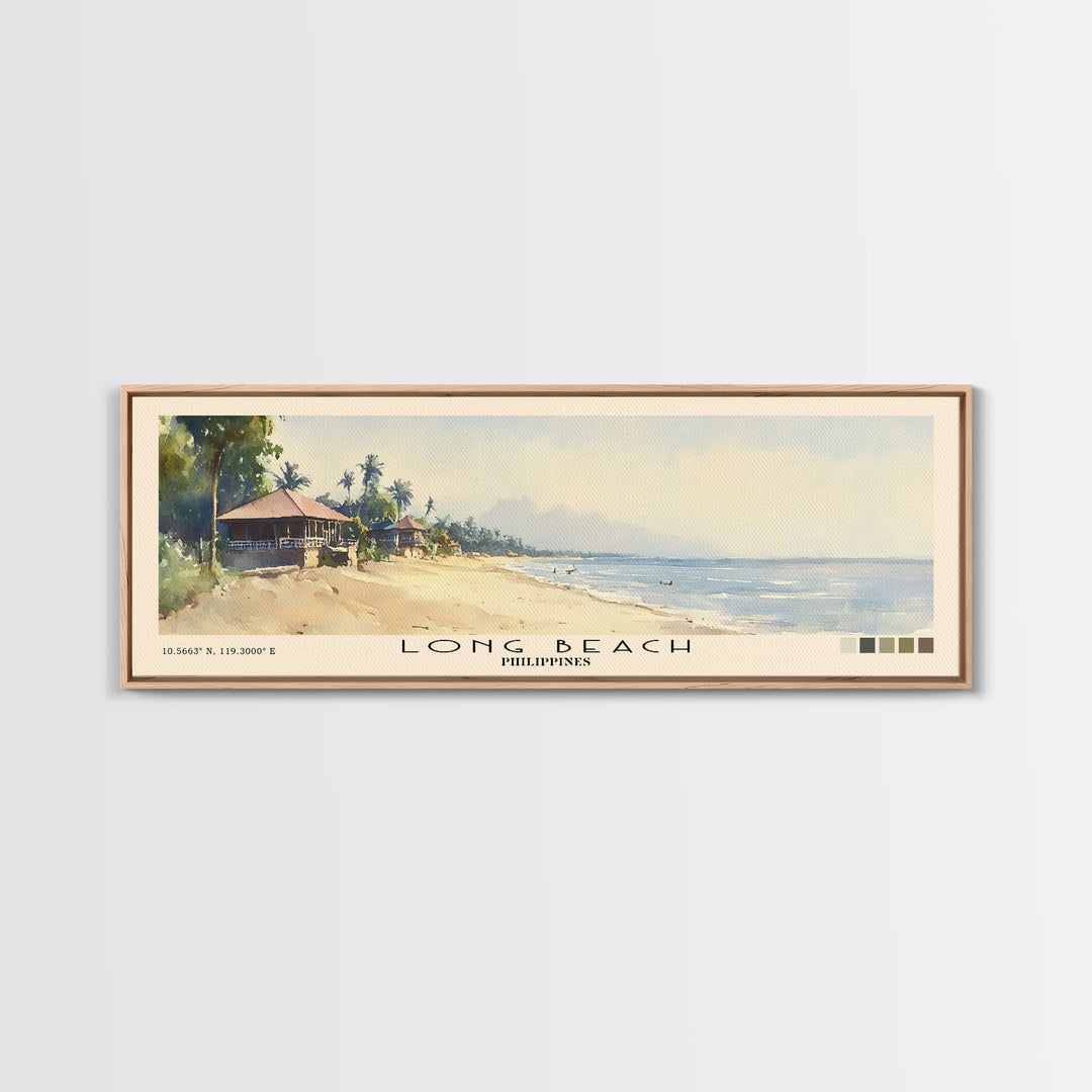 Long Beach, Philippines Panoramic Beach Print, Vacation Gift, Philippines Wall Art, Framed Canvas Print, Framed Beach Painting