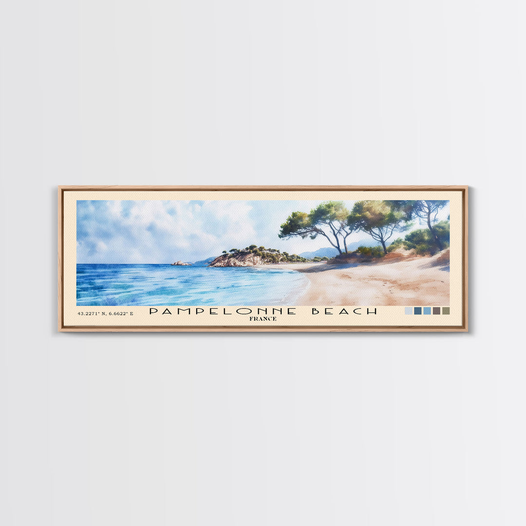 Paloma Beach, France Panoramic Print, Vacation Gift, France Wall Art, Beach Painting, Beach Decor, Large Wall Art, Wood Frame Art