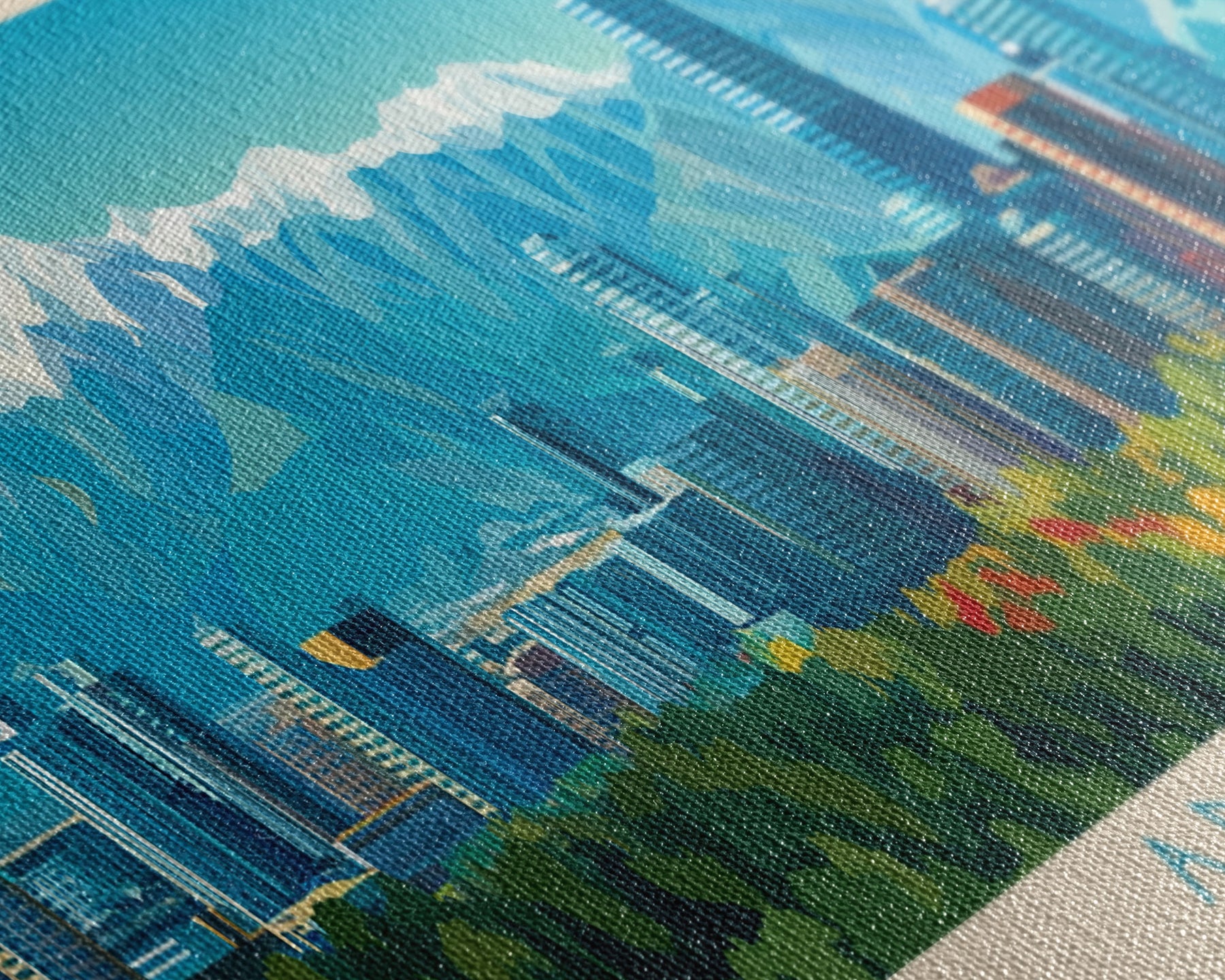 Most of our canvases are made in the USA, with the exception of canvases ordered with the light oak unstained frames, and any large canvases (24x48, 30x60, 16x48 and 20x60) ordered WITH a frame. These are temporarily made in and shipped from Europe, while we try to find a more consistent supplier in the USA.