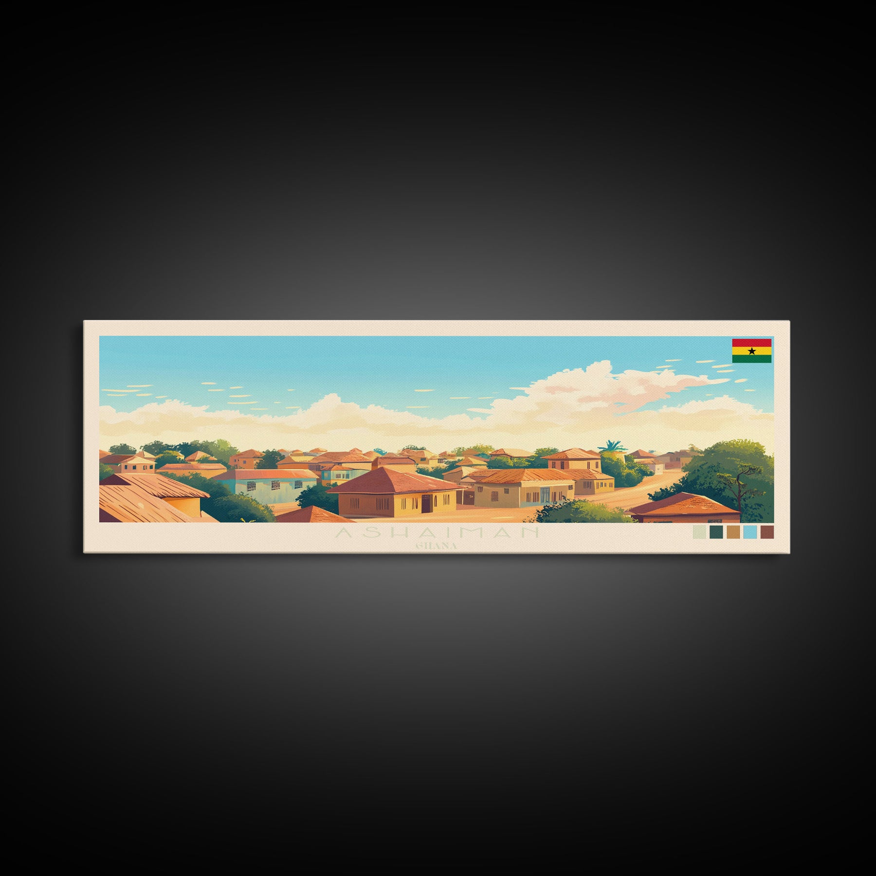 Panoramic Travel Poster Ashaiman, Ghana Canvas Print, Ashaiman, Ghana Painting, Ghana Art, Ashaiman Travel Art, Guest Room Painting