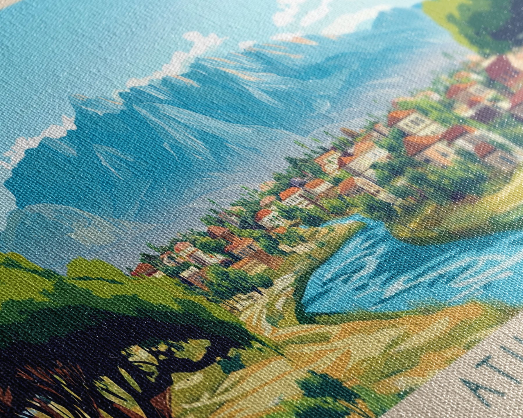 Most of our canvases are made in the USA, with the exception of canvases ordered with the light oak unstained frames, and any large canvases (24x48, 30x60, 16x48 and 20x60) ordered WITH a frame. These are temporarily made in and shipped from Europe, while we try to find a more consistent supplier in the USA.