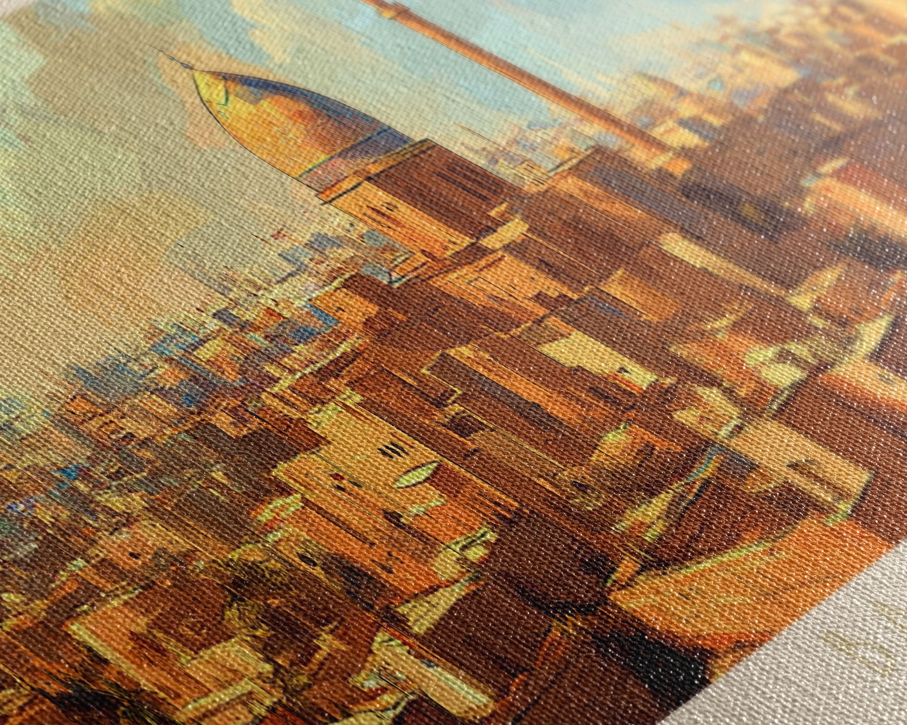 Most of our canvases are made in the USA, with the exception of canvases ordered with the light oak unstained frames, and any large canvases (24x48, 30x60, 16x48 and 20x60) ordered WITH a frame. These are temporarily made in and shipped from Europe, while we try to find a more consistent supplier in the USA.