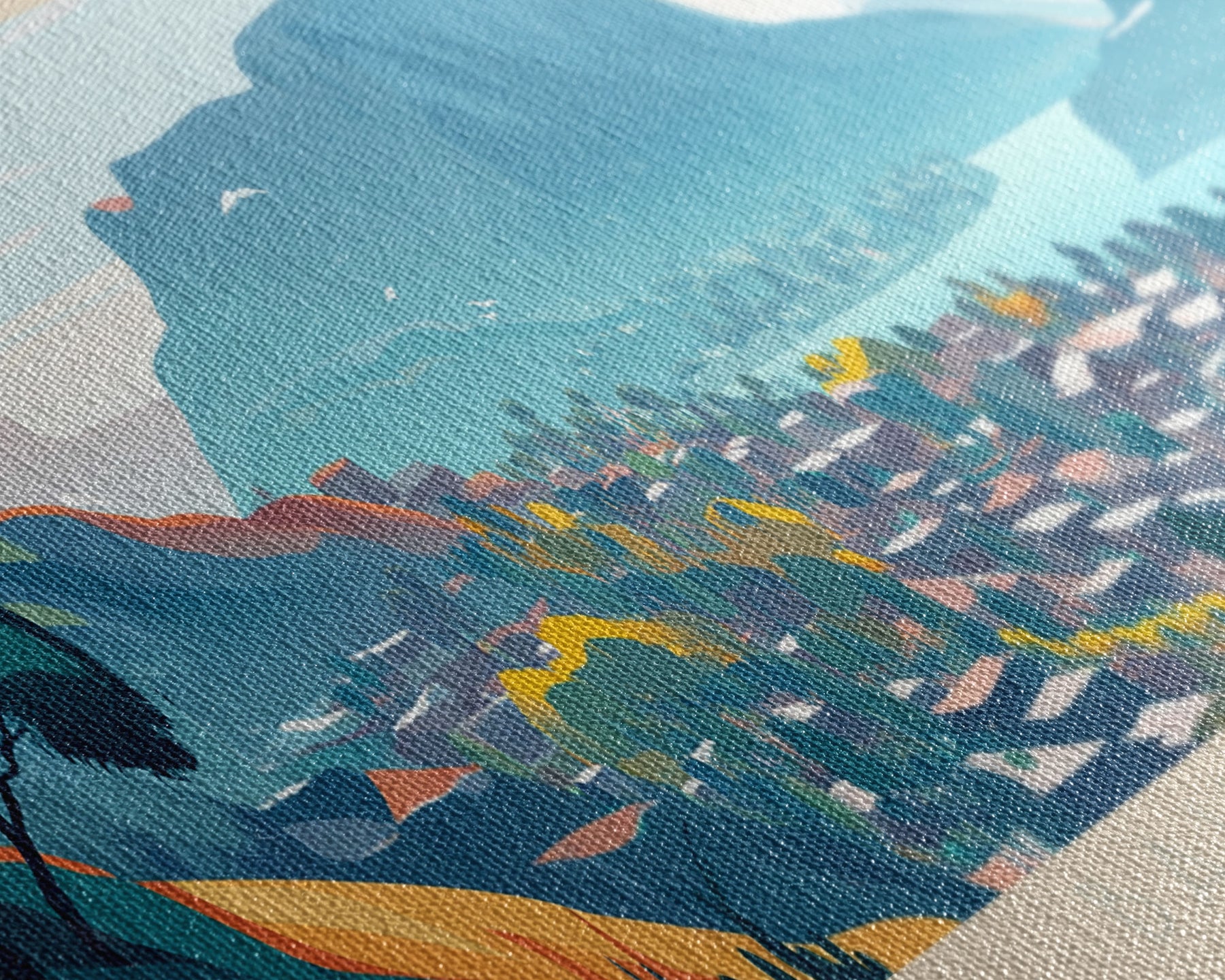 Most of our canvases are made in the USA, with the exception of canvases ordered with the light oak unstained frames, and any large canvases (24x48, 30x60, 16x48 and 20x60) ordered WITH a frame. These are temporarily made in and shipped from Europe, while we try to find a more consistent supplier in the USA.