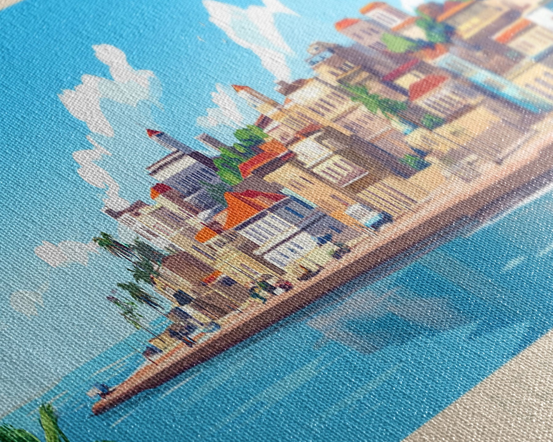 Most of our canvases are made in the USA, with the exception of canvases ordered with the light oak unstained frames, and any large canvases (24x48, 30x60, 16x48 and 20x60) ordered WITH a frame. These are temporarily made in and shipped from Europe, while we try to find a more consistent supplier in the USA.