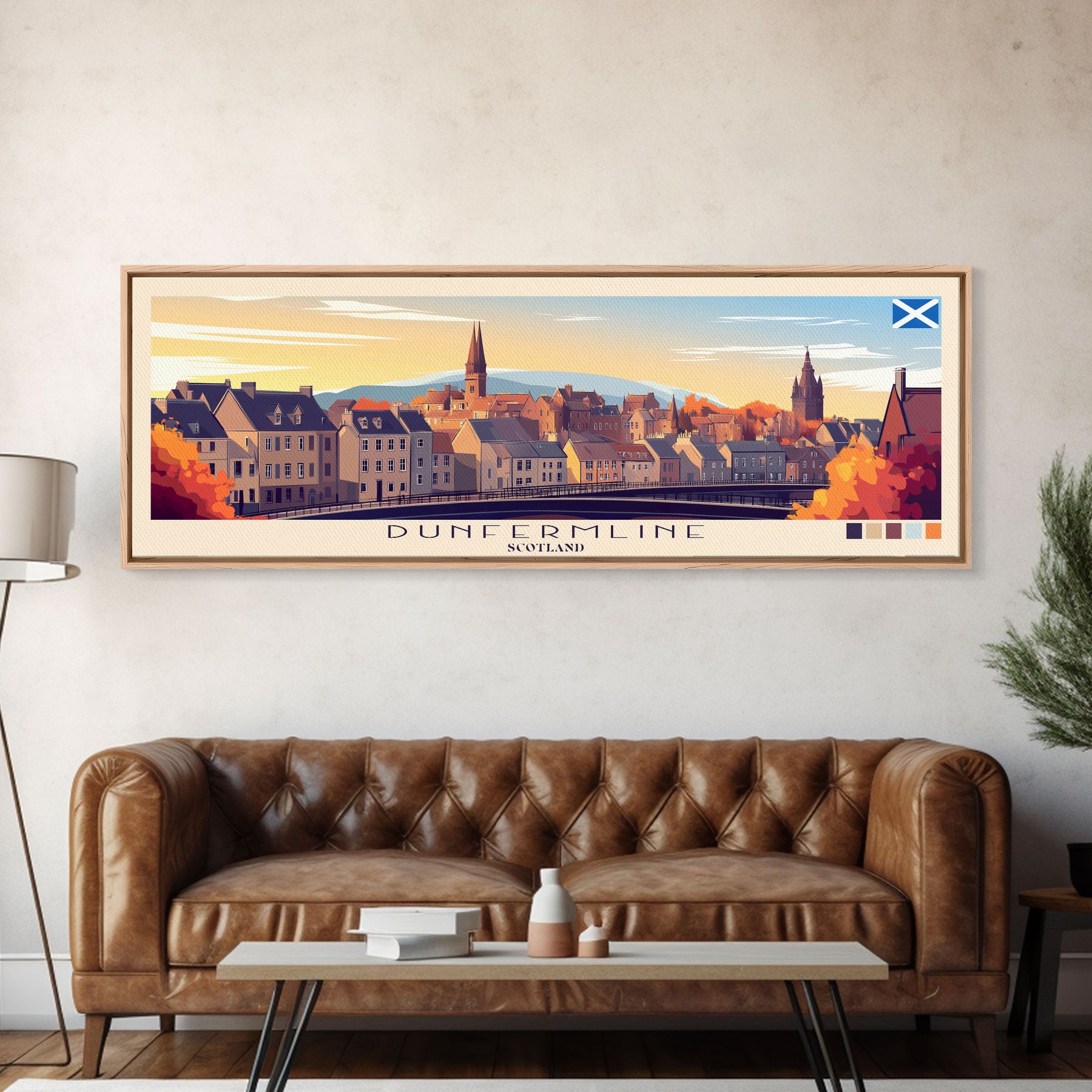 Dunfermline, Scotland Panoramic Travel Poster Canvas Print, Dunfermline, Scotland Painting, Scotland Art, Dunfermline Travel Art, Guest Room Painting