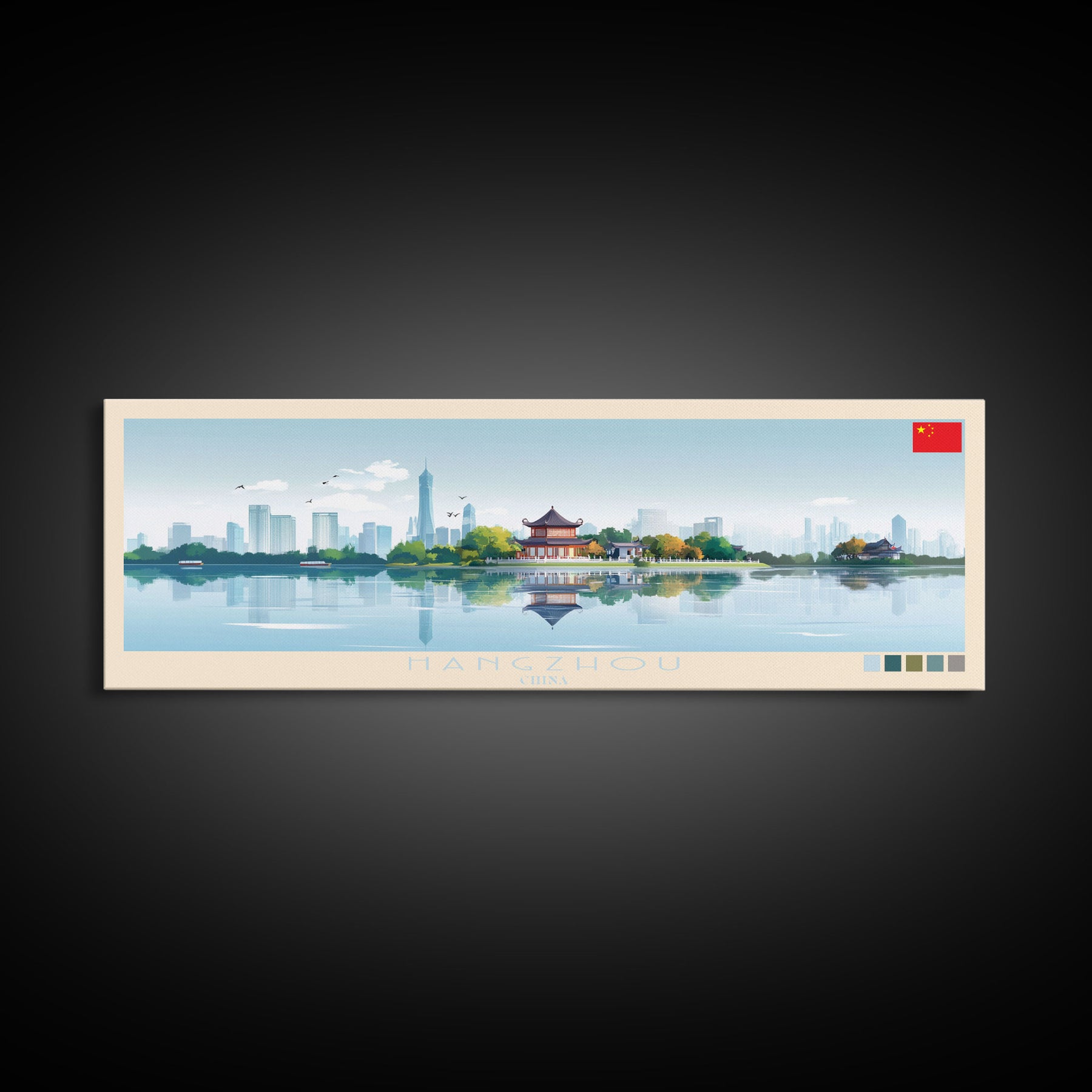 Hangzhou, China Panoramic Travel Poster Canvas Print, Hangzhou, China Painting, China Art, Hangzhou Panoramic Travel Art, Travel Painting