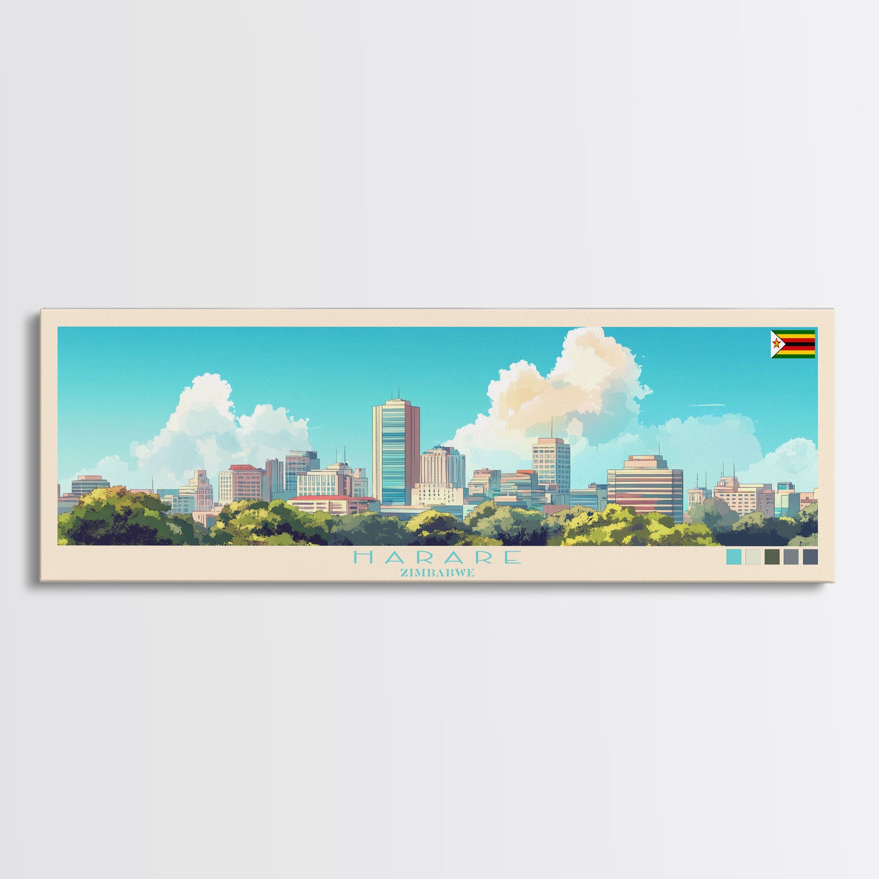 Harare, Zimbabwe Panoramic Travel Poster Canvas Print, Harare, Zimbabwe Painting, Zimbabwe Art, Harare Travel Art, Living Room Painting
