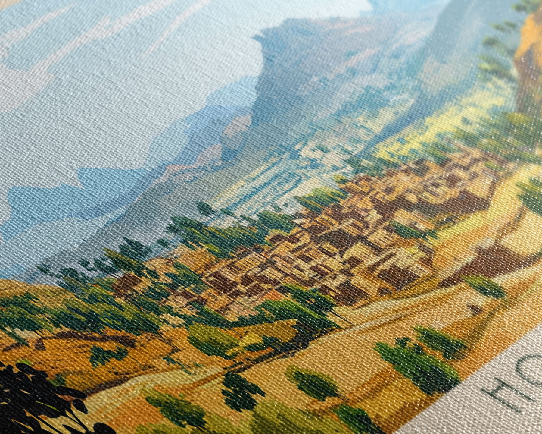 Most of our canvases are made in the USA, with the exception of canvases ordered with the light oak unstained frames, and any large canvases (24x48, 30x60, 16x48 and 20x60) ordered WITH a frame. These are temporarily made in and shipped from Europe, while we try to find a more consistent supplier in the USA.