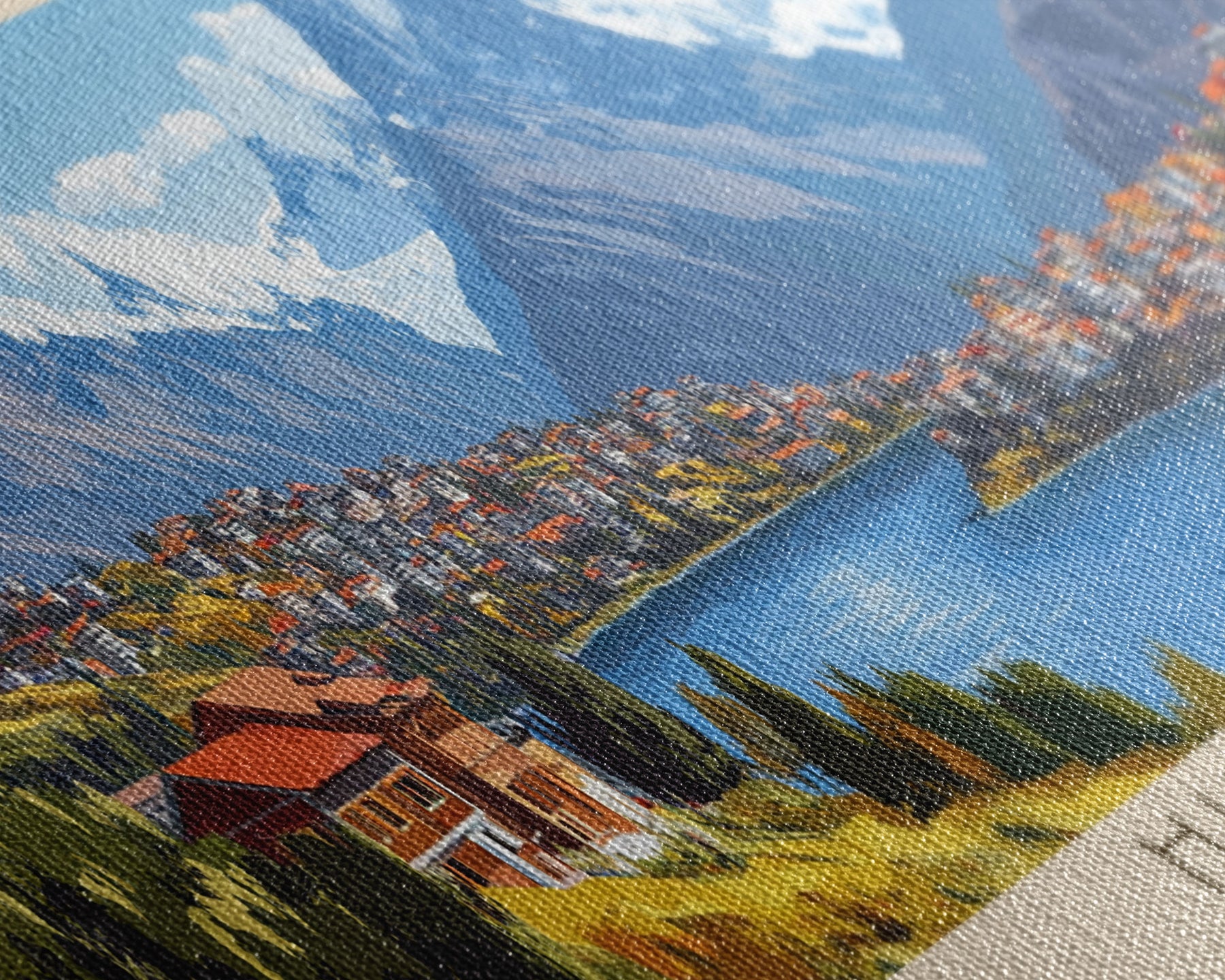 Most of our canvases are made in the USA, with the exception of canvases ordered with the light oak unstained frames, and any large canvases (24x48, 30x60, 16x48 and 20x60) ordered WITH a frame. These are temporarily made in and shipped from Europe, while we try to find a more consistent supplier in the USA.
