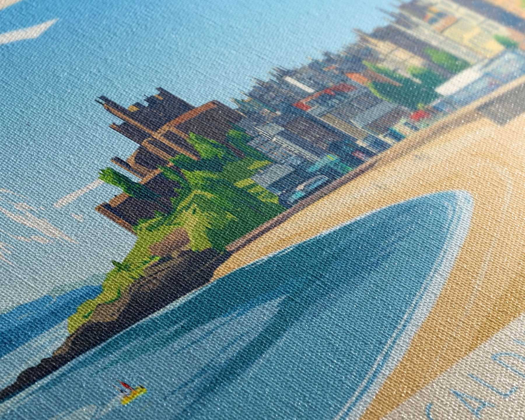 Most of our canvases are made in the USA, with the exception of canvases ordered with the light oak unstained frames, and any large canvases (24x48, 30x60, 16x48 and 20x60) ordered WITH a frame. These are temporarily made in and shipped from Europe, while we try to find a more consistent supplier in the USA.