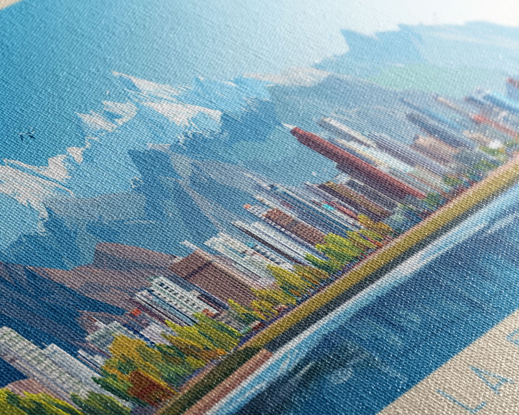 Most of our canvases are made in the USA, with the exception of canvases ordered with the light oak unstained frames, and any large canvases (24x48, 30x60, 16x48 and 20x60) ordered WITH a frame. These are temporarily made in and shipped from Europe, while we try to find a more consistent supplier in the USA.