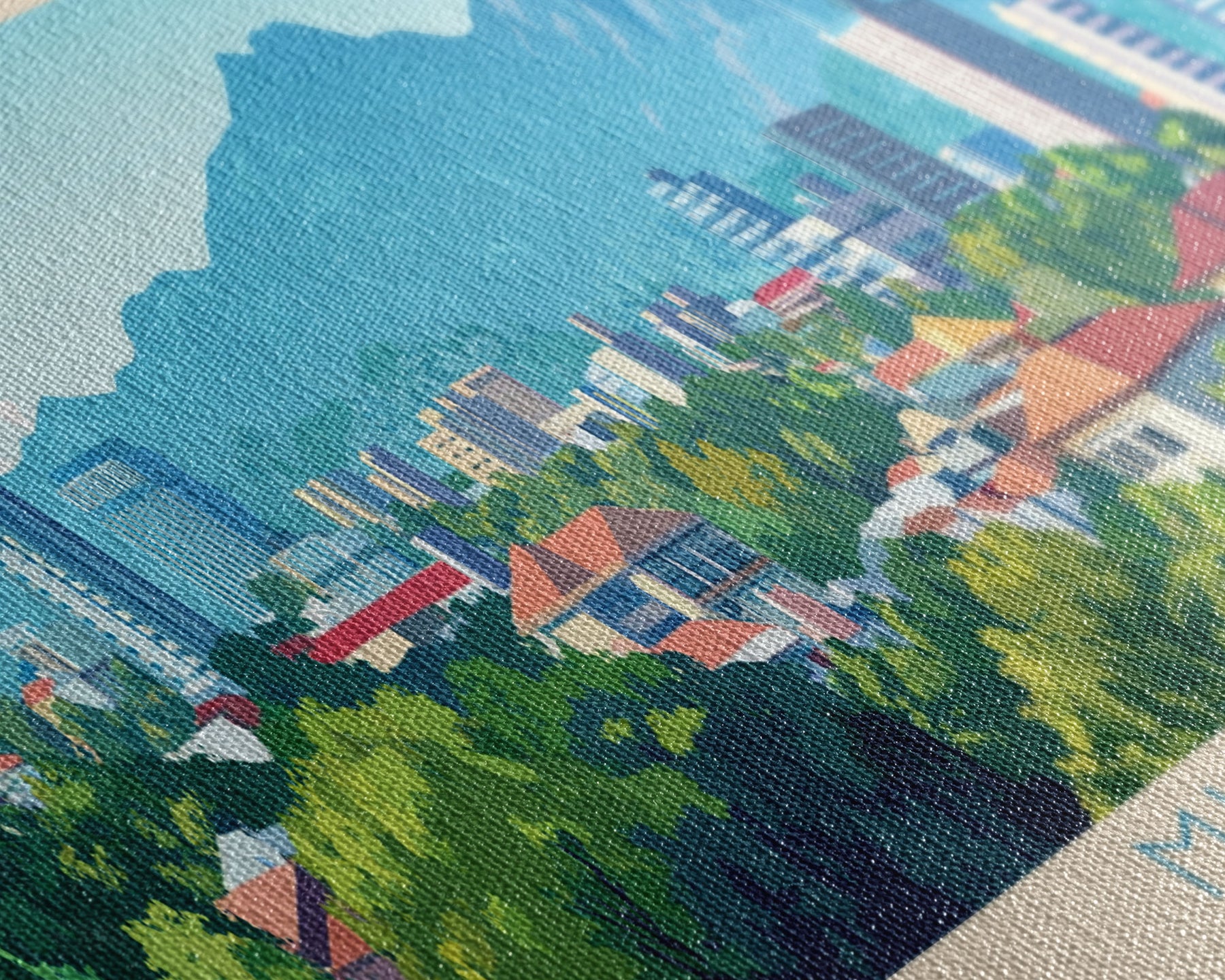 Most of our canvases are made in the USA, with the exception of canvases ordered with the light oak unstained frames, and any large canvases (24x48, 30x60, 16x48 and 20x60) ordered WITH a frame. These are temporarily made in and shipped from Europe, while we try to find a more consistent supplier in the USA.