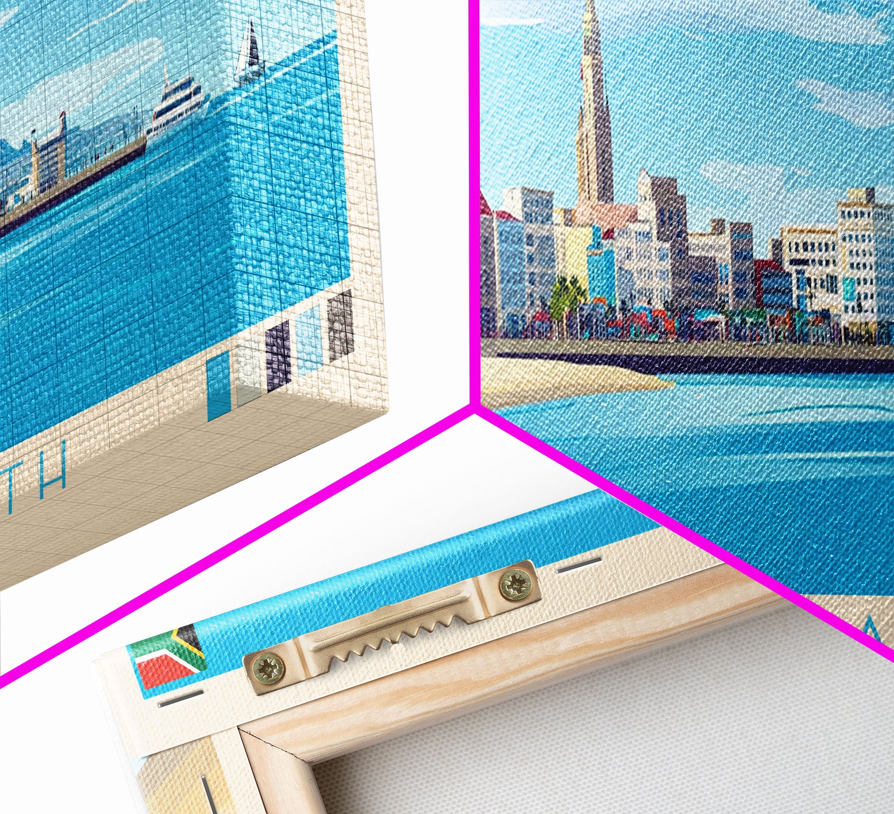 Port Elizabeth, South Africa Panoramic Travel Poster Canvas Print, Port Elizabeth, South Africa Painting, South Africa Art, Port Elizabeth Travel Art, Guest Room Painting