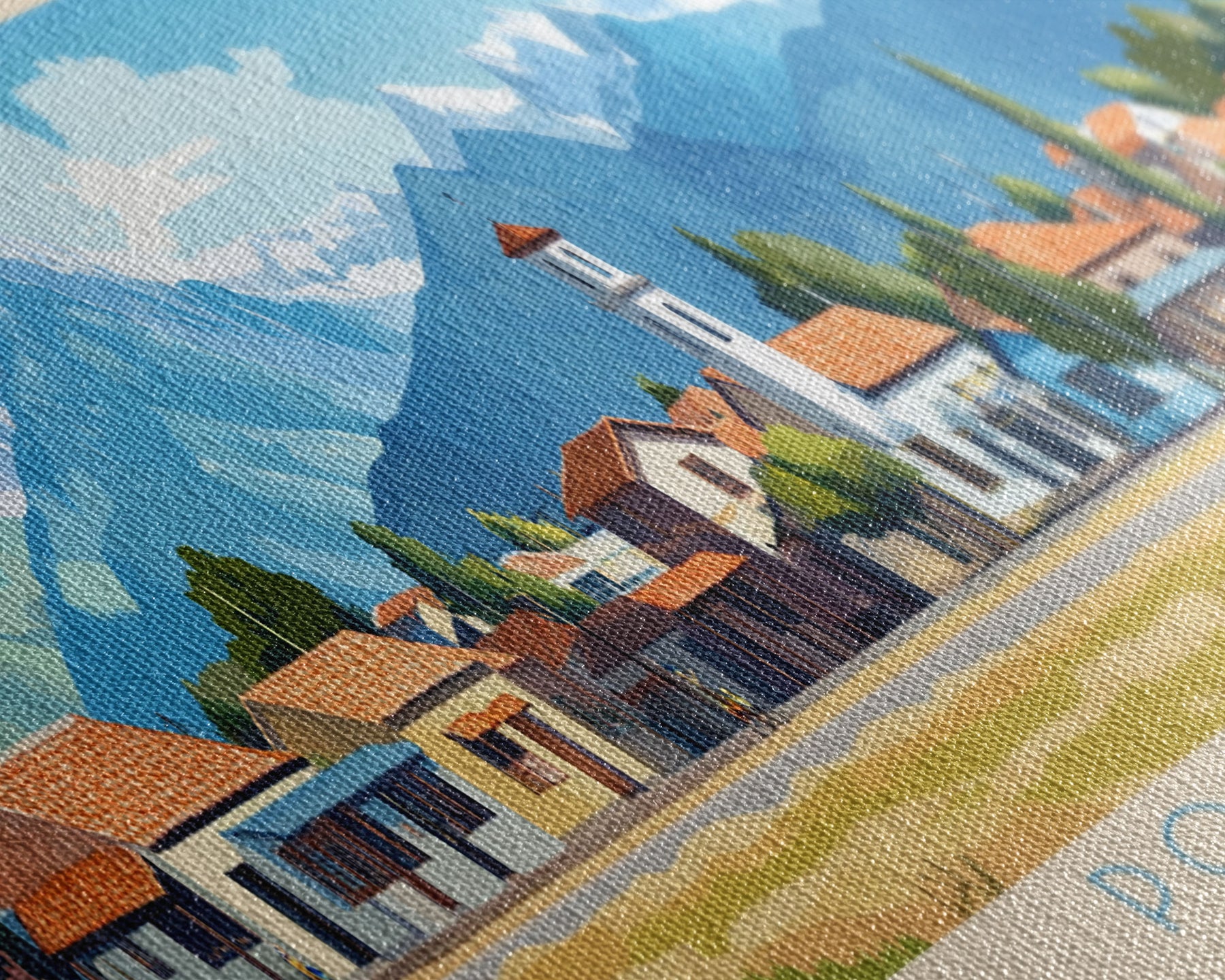 Most of our canvases are made in the USA, with the exception of canvases ordered with the light oak unstained frames, and any large canvases (24x48, 30x60, 16x48 and 20x60) ordered WITH a frame. These are temporarily made in and shipped from Europe, while we try to find a more consistent supplier in the USA.