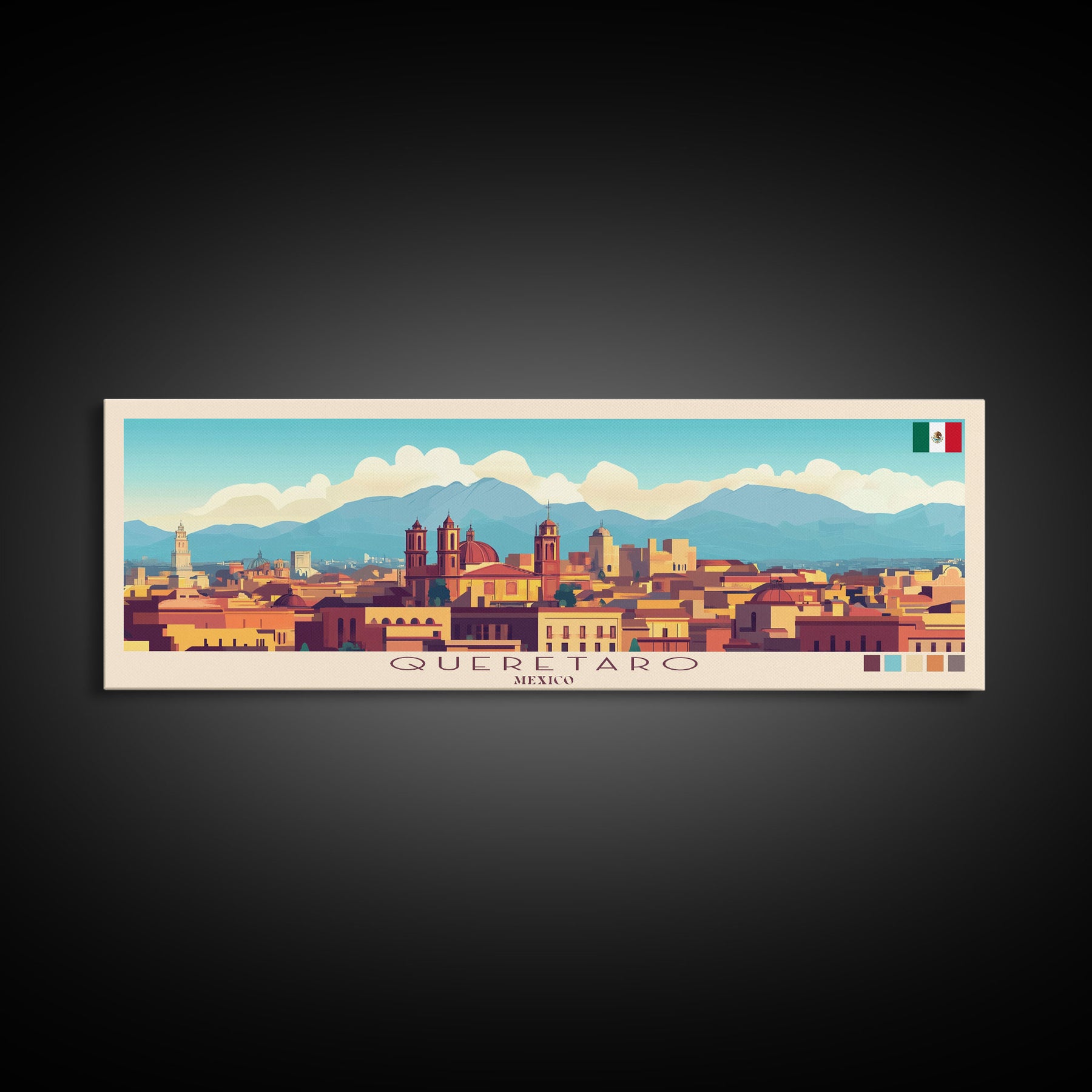 Queretaro, Mexico Panoramic Travel Poster Canvas Print, Queretaro, Mexico Painting, Mexico Art, Queretaro Travel Art, Living Room Painting