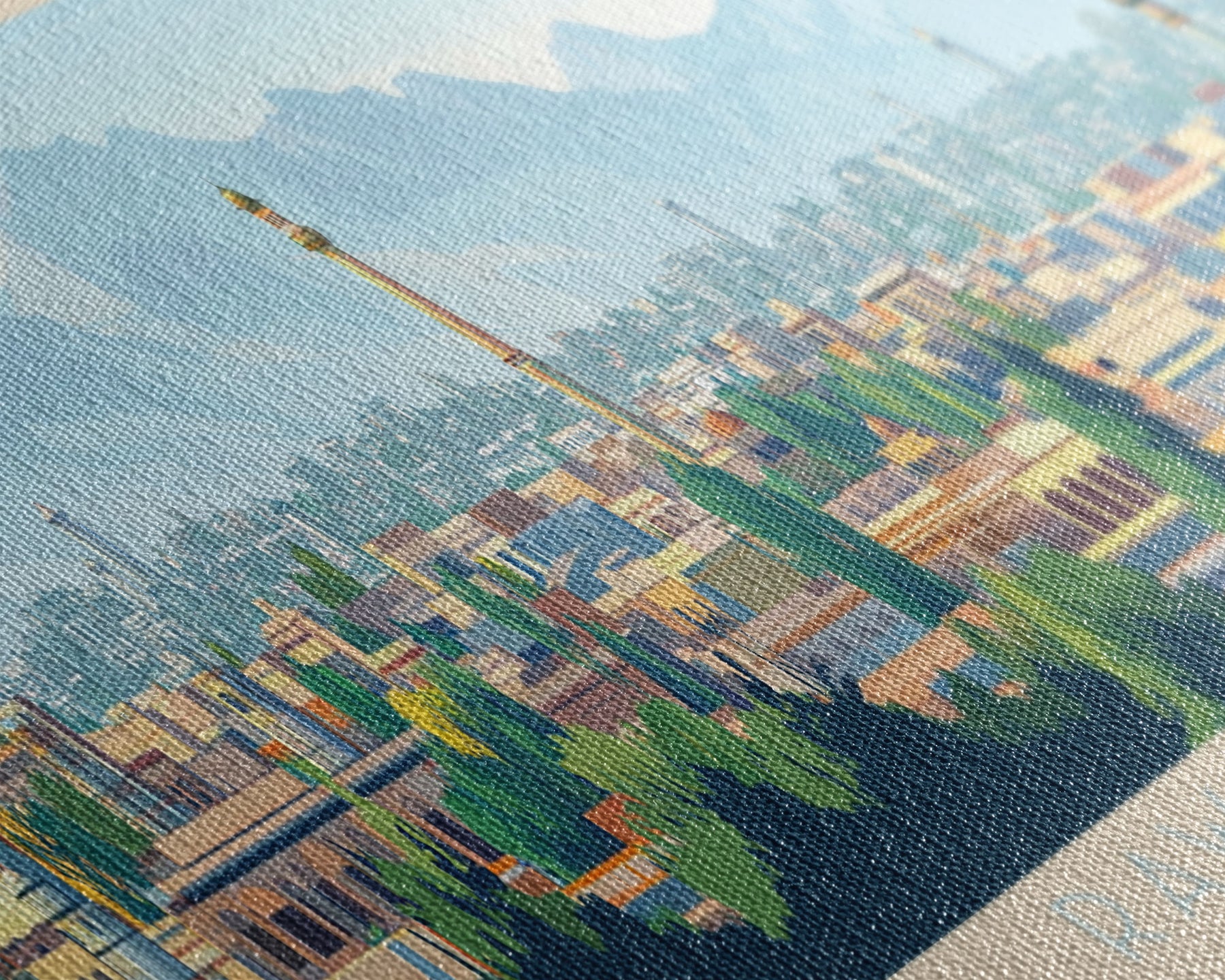 Most of our canvases are made in the USA, with the exception of canvases ordered with the light oak unstained frames, and any large canvases (24x48, 30x60, 16x48 and 20x60) ordered WITH a frame. These are temporarily made in and shipped from Europe, while we try to find a more consistent supplier in the USA.