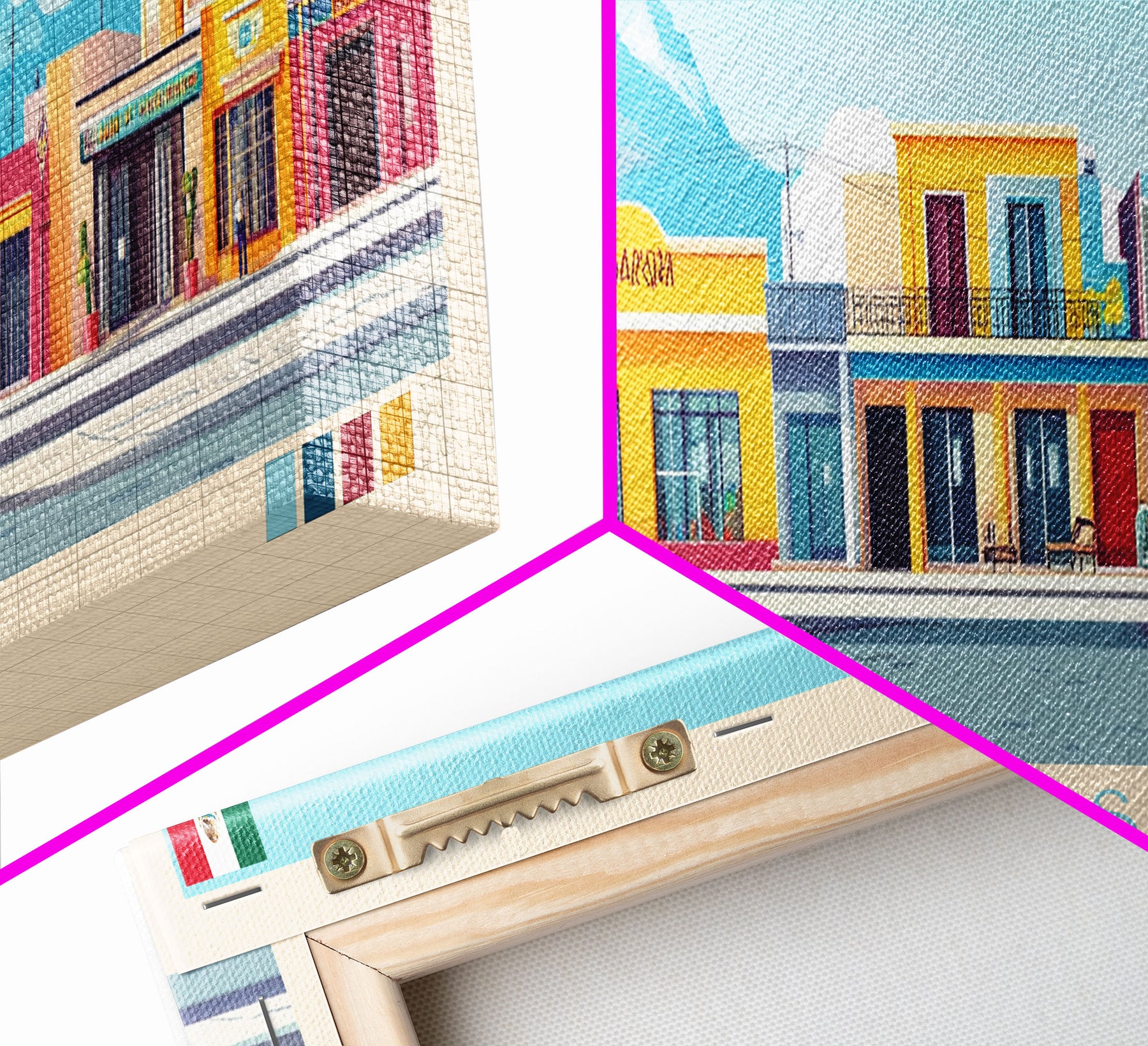 Most of our canvases are made in the USA, with the exception of canvases ordered with the light oak unstained frames, and any large canvases (24x48, 30x60, 16x48 and 20x60) ordered WITH a frame. These are temporarily made in and shipped from Europe, while we try to find a more consistent supplier in the USA.