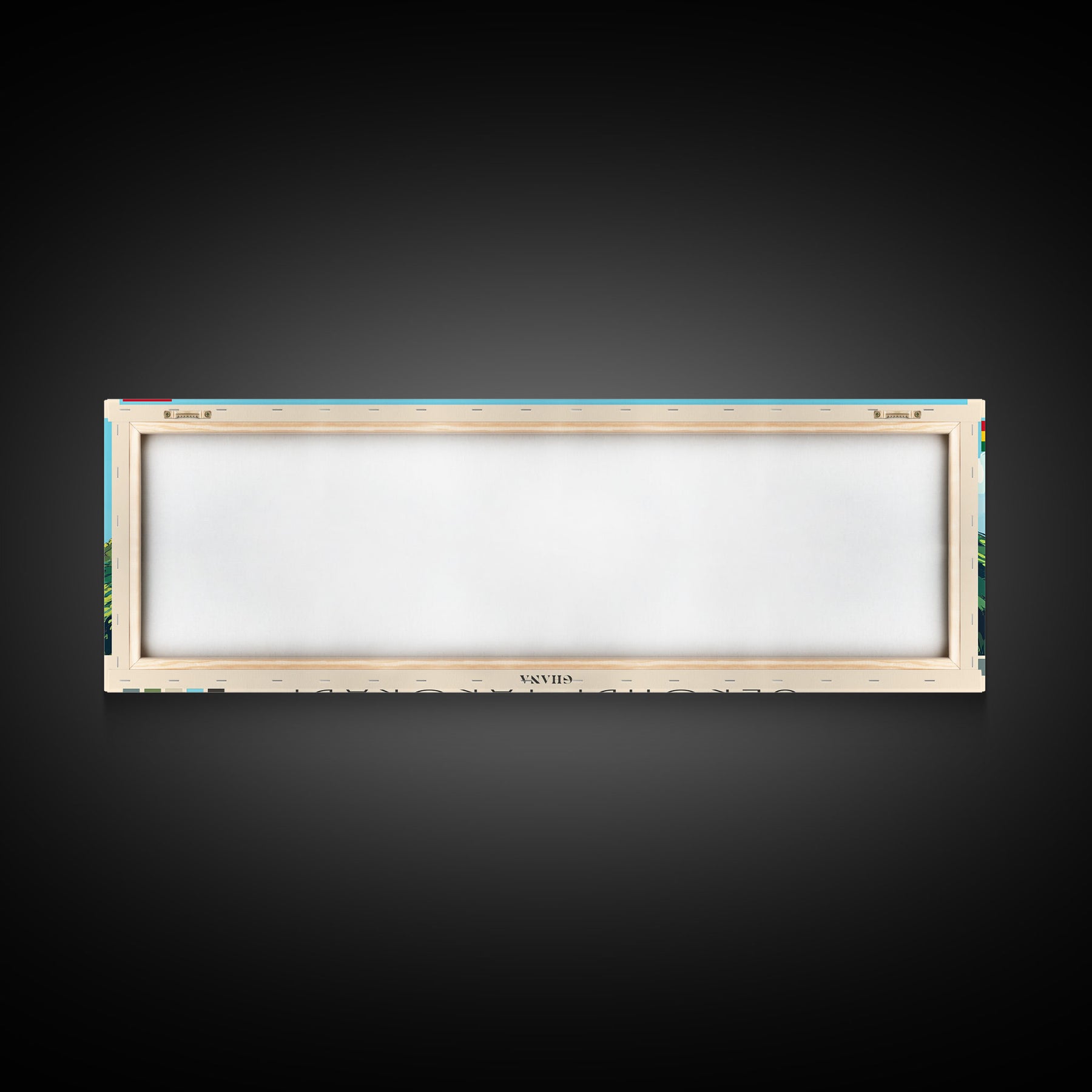 Most of our canvases are made in the USA, with the exception of canvases ordered with the light oak unstained frames, and any large canvases (24x48, 30x60, 16x48 and 20x60) ordered WITH a frame. These are temporarily made in and shipped from Europe, while we try to find a more consistent supplier in the USA.