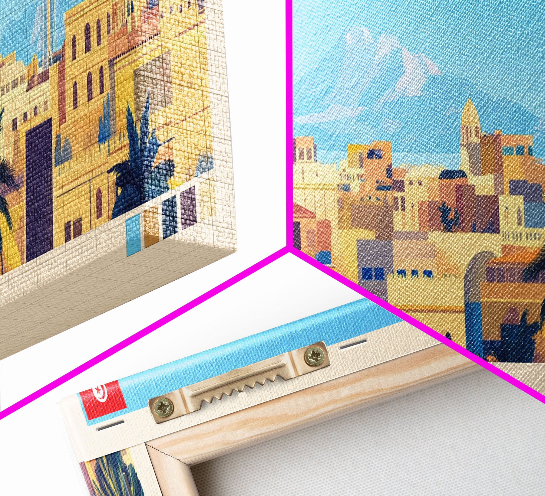 Sfax, Tunisia Panoramic Travel Poster Canvas Print, Sfax, Tunisia Painting, Tunisia Art, Sfax Travel Art, Living Room Painting