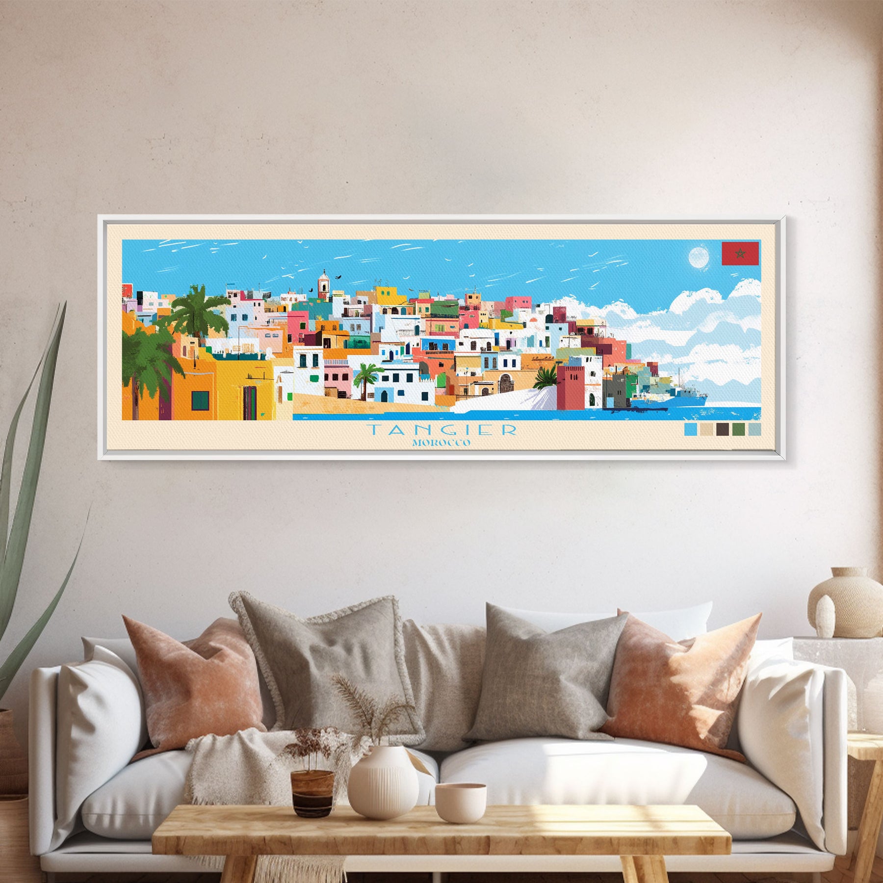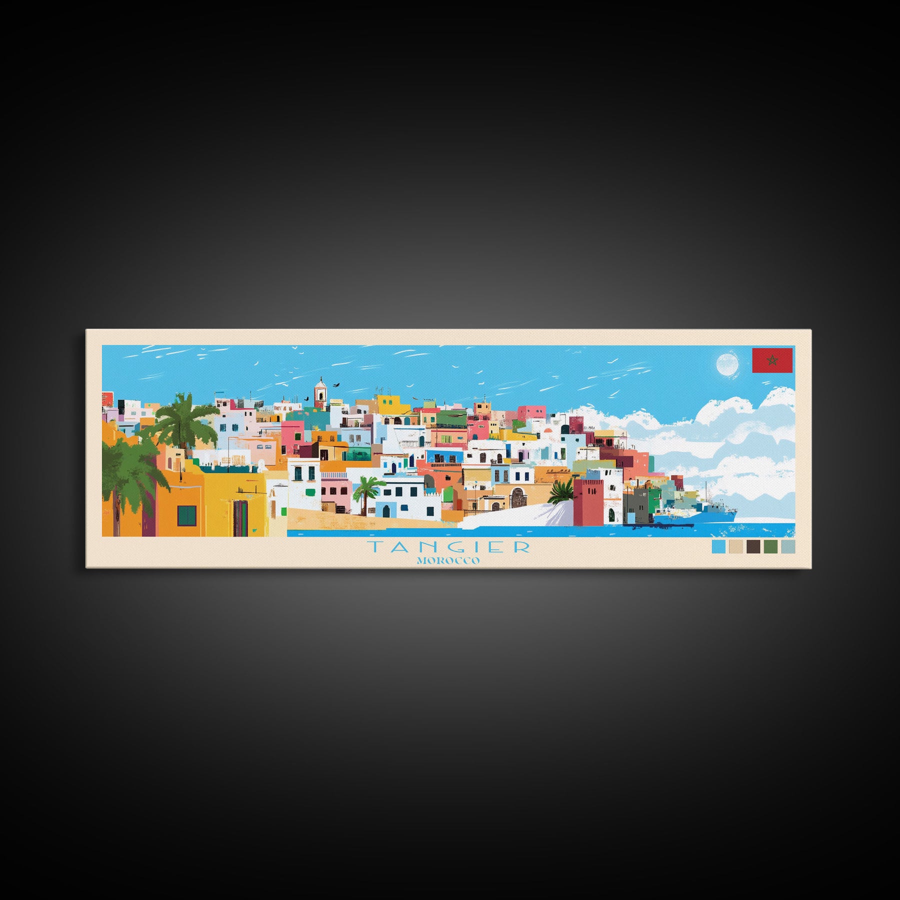 Tangier, Morocco Panoramic Travel Poster Canvas Print, Tangier, Morocco Painting, Morocco Art, Tangier Panoramic Travel Art, Travel Painting