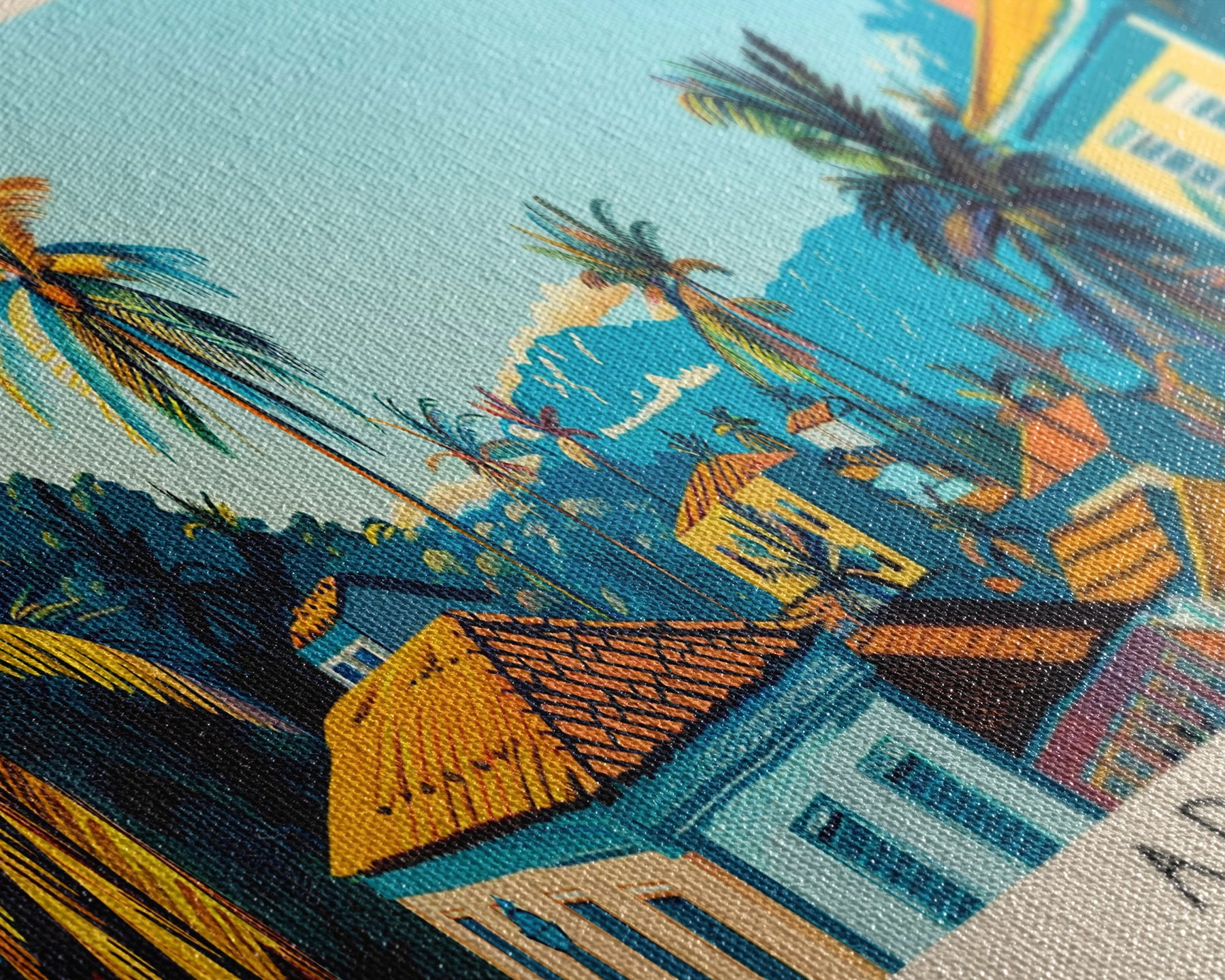 Most of our canvases are made in the USA, with the exception of canvases ordered with the light oak unstained frames, and any large canvases (24x48, 30x60, 16x48 and 20x60) ordered WITH a frame. These are temporarily made in and shipped from Europe, while we try to find a more consistent supplier in the USA.