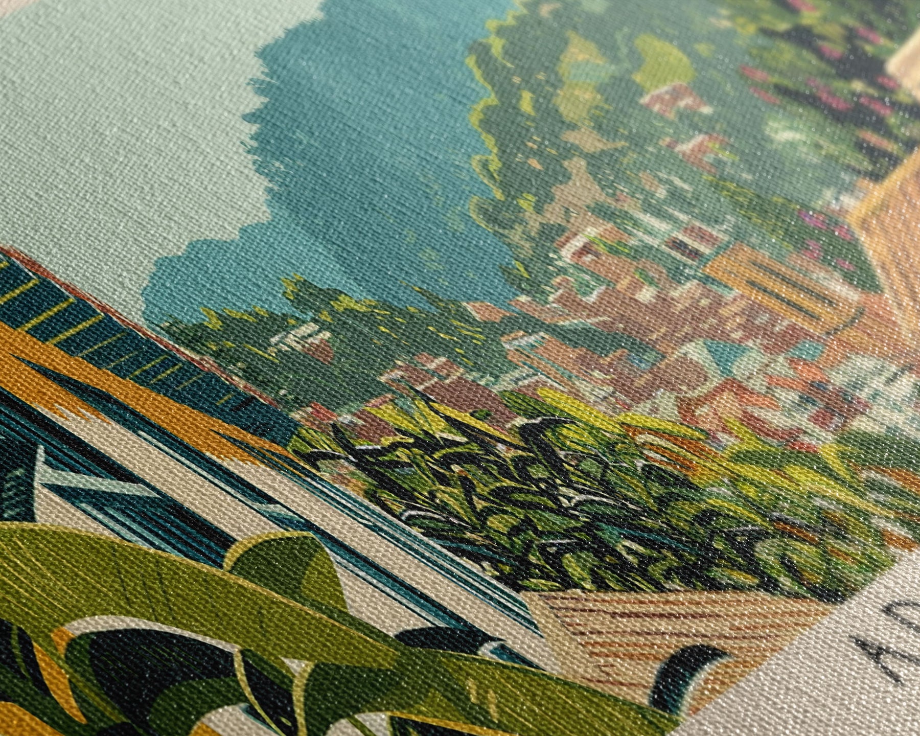 Most of our canvases are made in the USA, with the exception of canvases ordered with the light oak unstained frames, and any large canvases (24x48, 30x60, 16x48 and 20x60) ordered WITH a frame. These are temporarily made in and shipped from Europe, while we try to find a more consistent supplier in the USA.