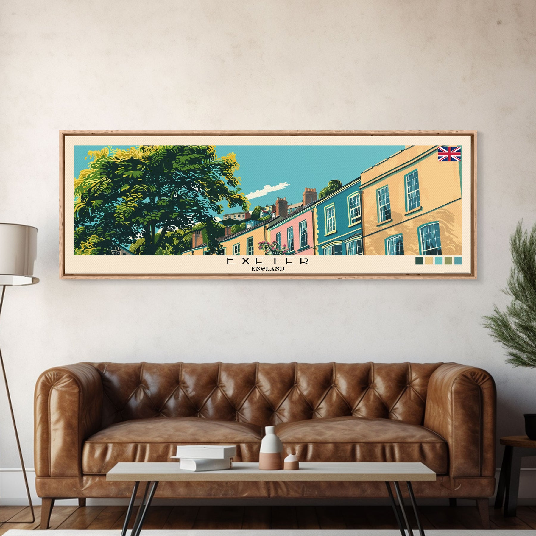 Exeter, England Panoramic Canvas Print, Exeter, England Painting, England Art, Exeter Travel Poster, Travel Art, Vacation Gift