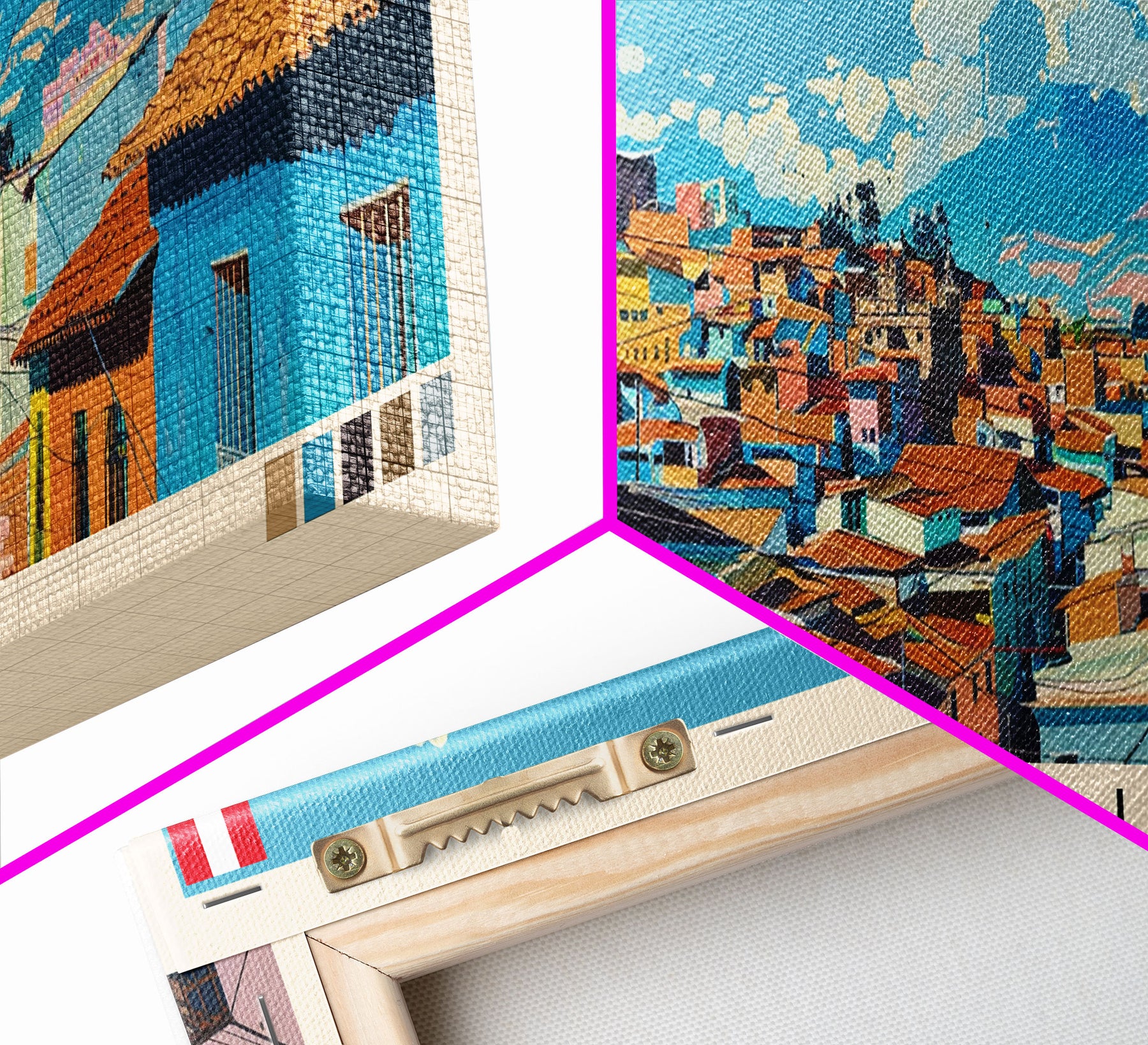 Most of our canvases are made in the USA, with the exception of canvases ordered with the light oak unstained frames, and any large canvases (24x48, 30x60, 16x48 and 20x60) ordered WITH a frame. These are temporarily made in and shipped from Europe, while we try to find a more consistent supplier in the USA.