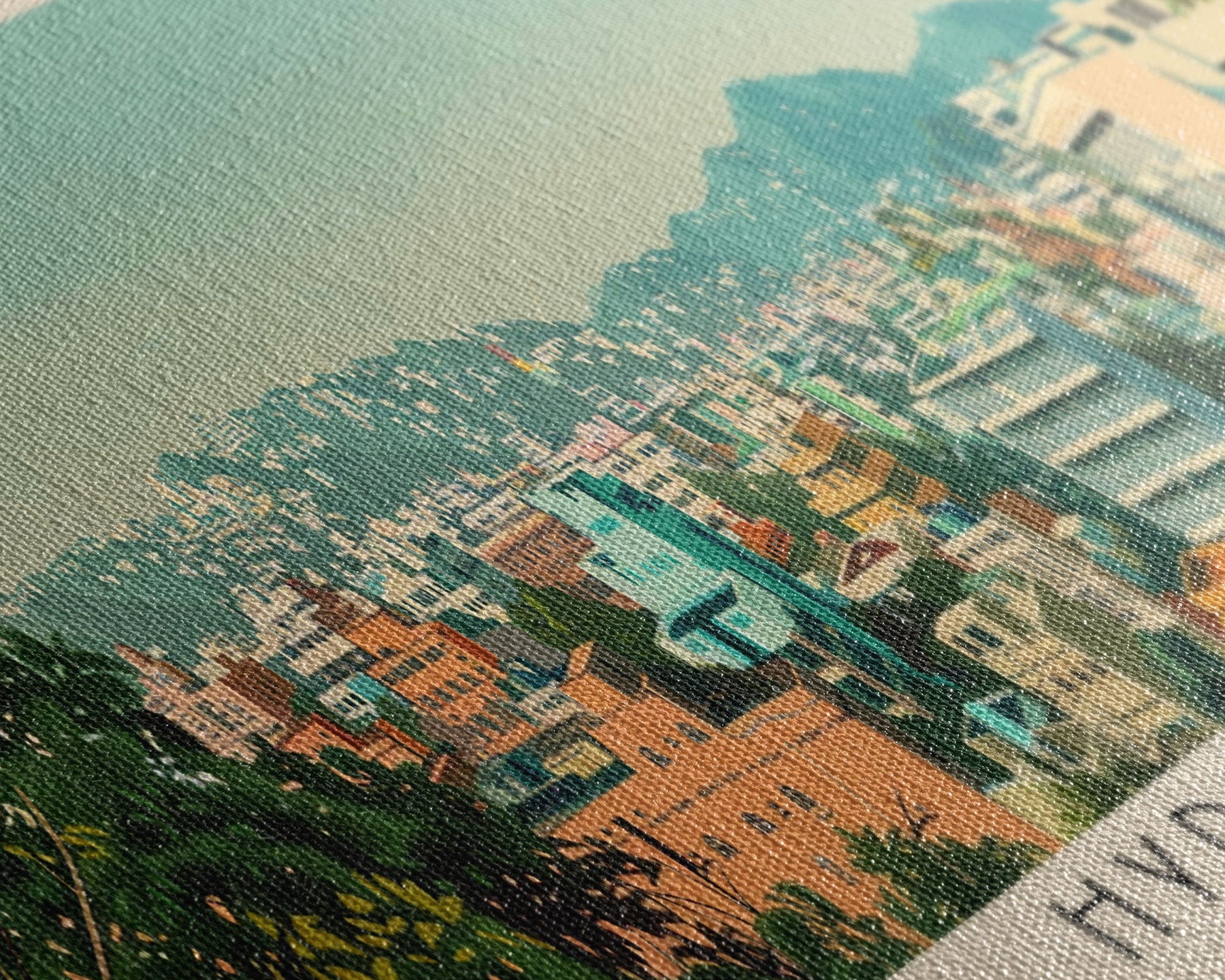 Most of our canvases are made in the USA, with the exception of canvases ordered with the light oak unstained frames, and any large canvases (24x48, 30x60, 16x48 and 20x60) ordered WITH a frame. These are temporarily made in and shipped from Europe, while we try to find a more consistent supplier in the USA.