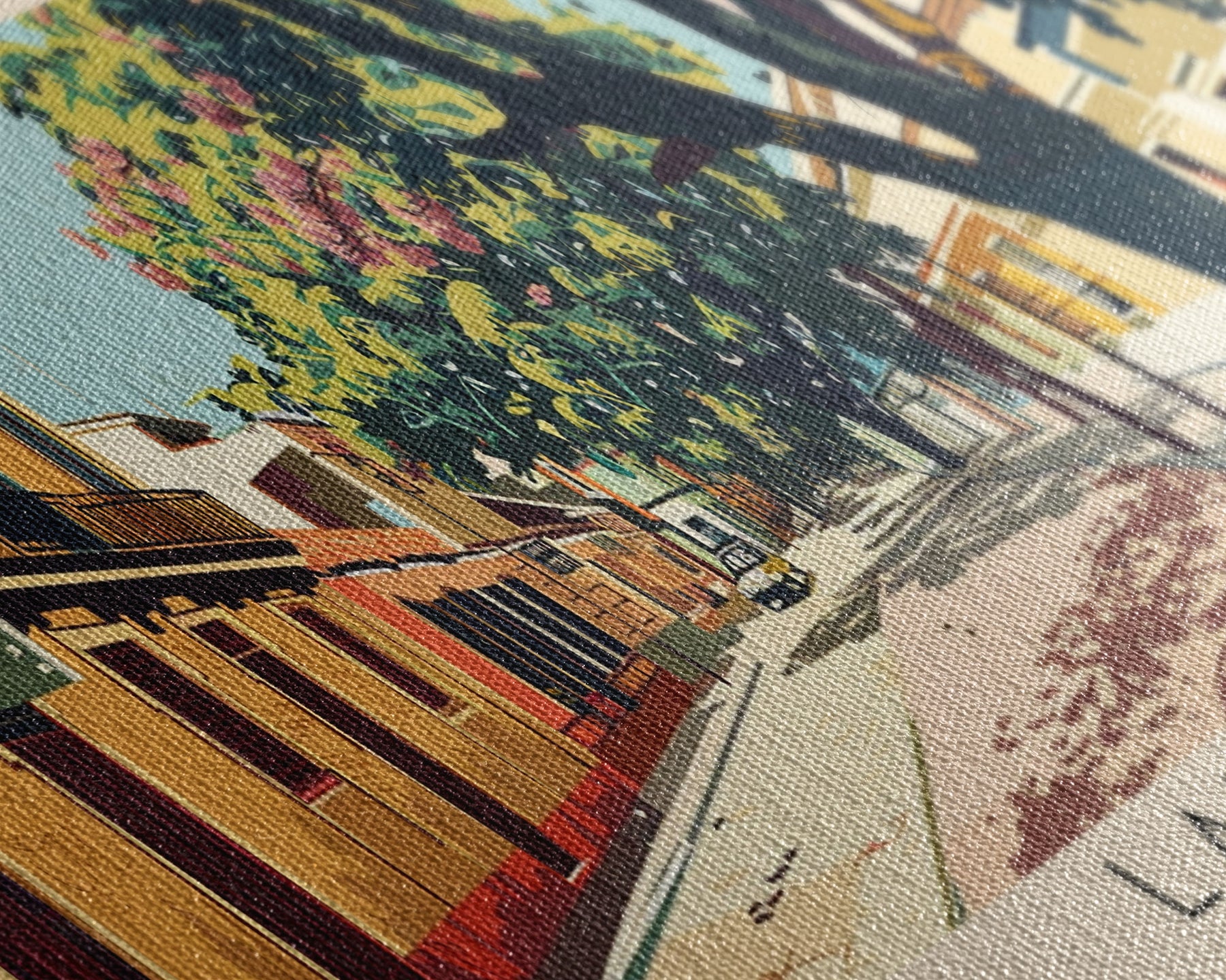 Most of our canvases are made in the USA, with the exception of canvases ordered with the light oak unstained frames, and any large canvases (24x48, 30x60, 16x48 and 20x60) ordered WITH a frame. These are temporarily made in and shipped from Europe, while we try to find a more consistent supplier in the USA.