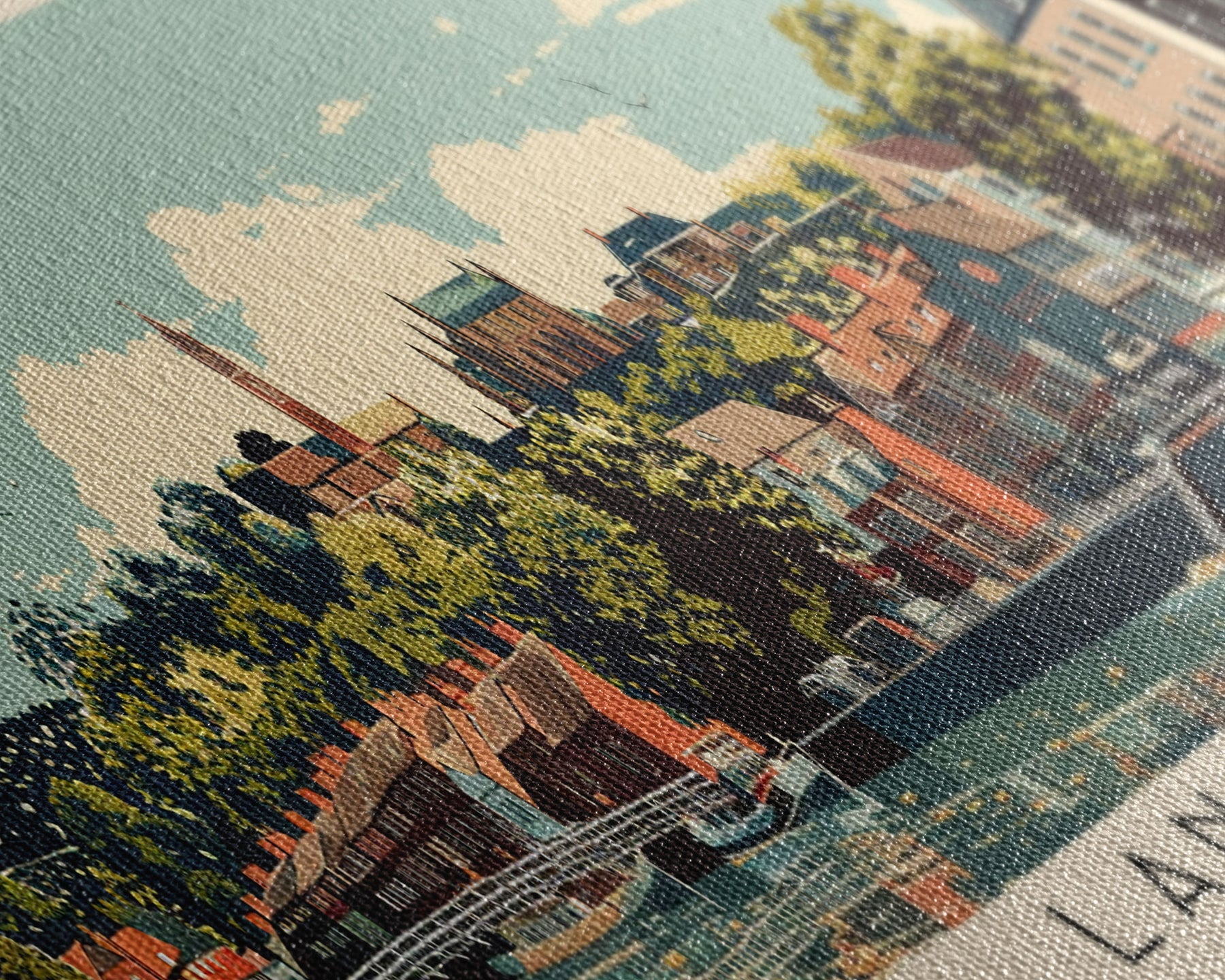Lancaster, England Panoramic Canvas Print, Lancaster, England Painting, England Art, Lancaster Travel Poster, Travel Art, Guest Room Painting
