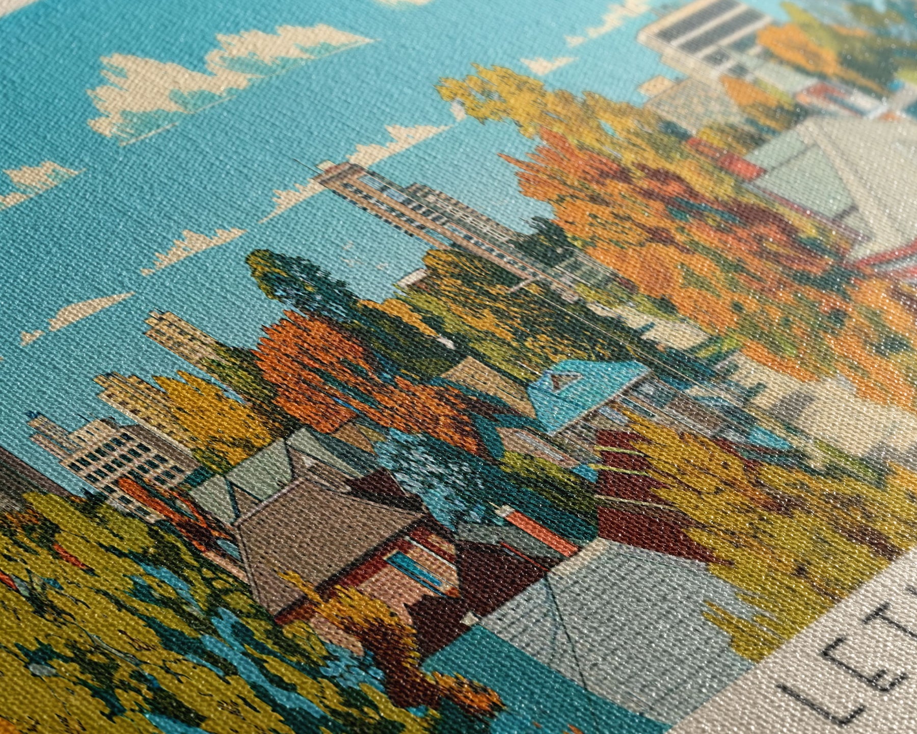 Most of our canvases are made in the USA, with the exception of canvases ordered with the light oak unstained frames, and any large canvases (24x48, 30x60, 16x48 and 20x60) ordered WITH a frame. These are temporarily made in and shipped from Europe, while we try to find a more consistent supplier in the USA.